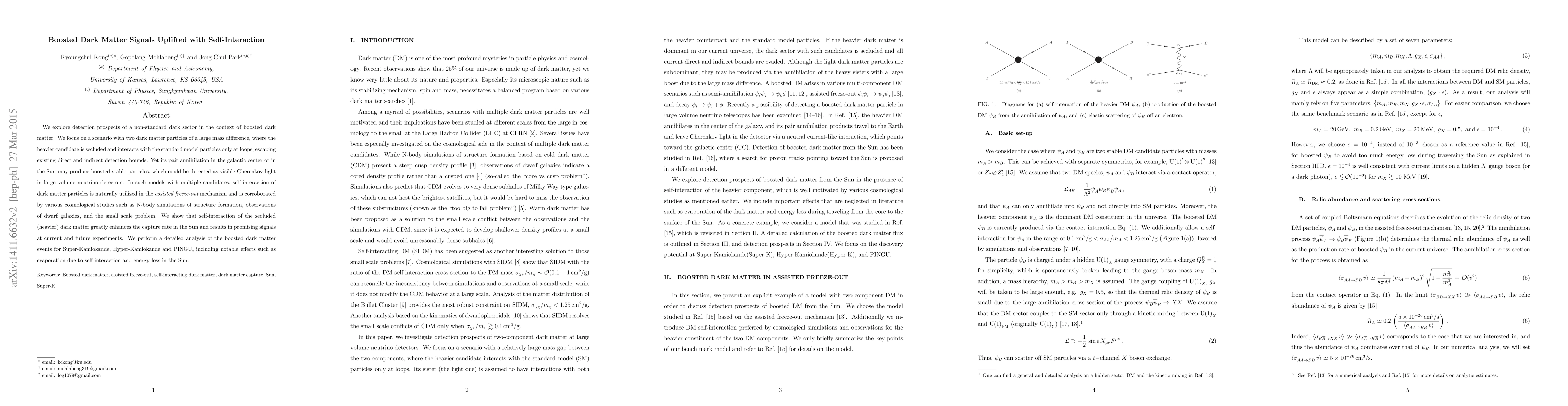 This paper investigates boosted dark matter signals in a non-standard dark sector with self-interaction, focusing on a scenario where a heavier dark matter candidate interacts only at loop levels, evading detection bounds. The study highlights how self-interaction enhances detection prospects in neutrino detectors via Cherenkov light, and performs a detailed analysis of potential signals in Super-Kamiokande, Hyper-Kamiokande, and PINGU.