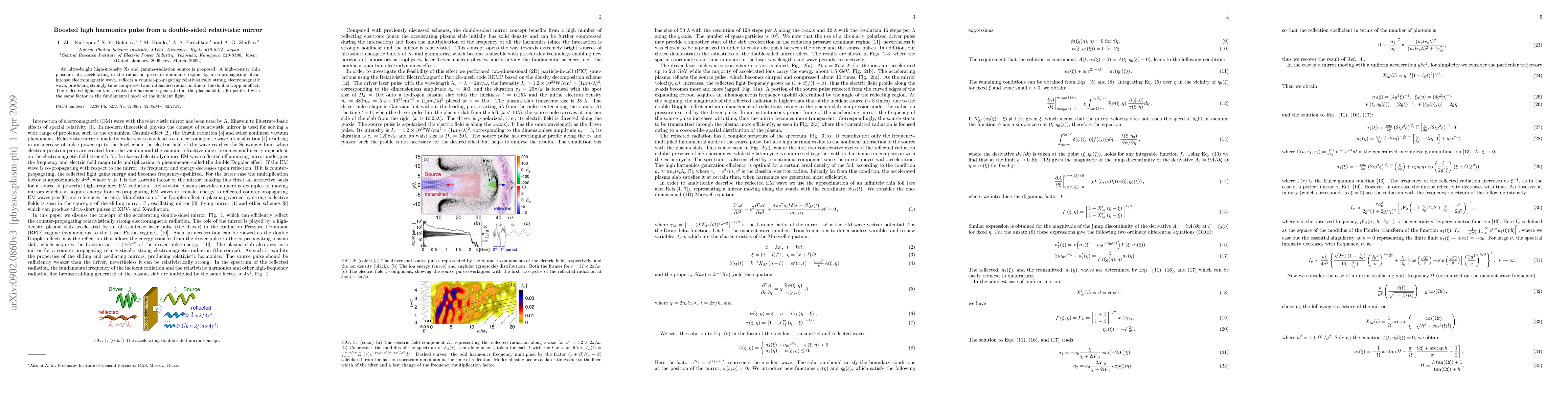 An ultra-bright high-intensity X- and gamma-radiation source is proposed. A high-density thin plasma slab, accelerating in the radiation pressure dominant regime by a co-propagating ultra-intense electromagnetic wave, reflects a counter-propagating relativistically strong electromagnetic wave, producing strongly time-compressed and intensified radiation due to the double Doppler effect. The reflected light contains relativistic harmonics generated at the plasma slab, all upshifted with the same factor as the fundamental mode of the incident light.