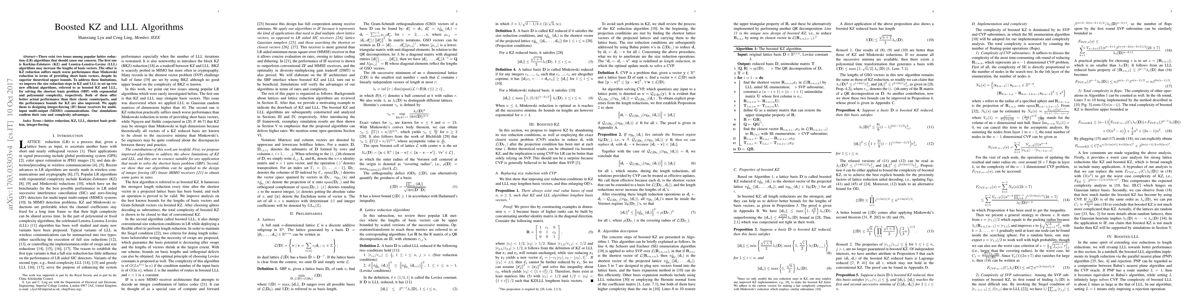 There exist two issues among popular lattice reduction (LR) algorithms that should cause our concern. The first one is Korkine-Zolotarev (KZ) and Lenstra-Lenstra-Lovasz (LLL) algorithms may increase the lengths of basis vectors. The other is KZ reduction suffers much worse performance than Minkowski reduction in terms of providing short basis vectors, despite its superior theoretical upper bounds. To address these limitations, we improve the size reduction steps in KZ and LLL to set up two new efficient algorithms, referred to as boosted KZ and LLL, for solving the shortest basis problem (SBP) with exponential and polynomial complexity, respectively. Both of them offer better actual performance than their classic counterparts, and the performance bounds for KZ are also improved. We apply them to designing integer-forcing (IF) linear receivers for multi-input multi-output (MIMO) communications. Our simulations confirm their rate and complexity advantages.