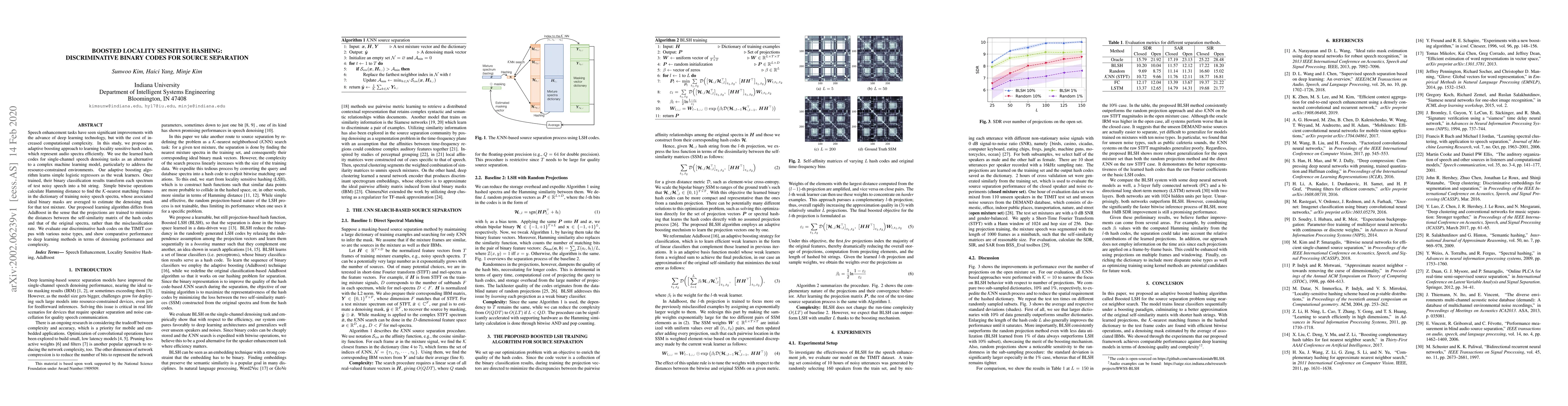 This study proposes a boosting approach to learning locality sensitive hash codes for efficient single-channel speech denoising in resource-constrained environments, achieving comparable performance to deep learning methods.