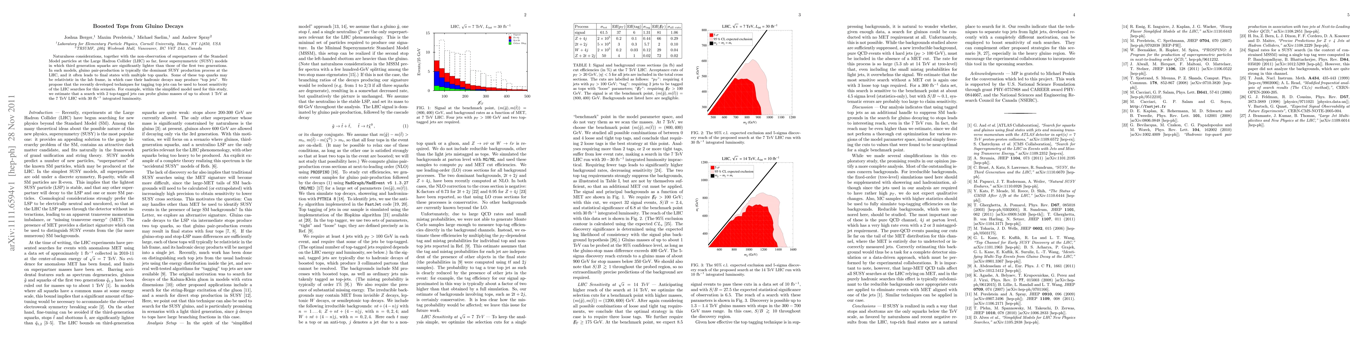 This paper explores how the decay of lighter third-generation squarks in supersymmetric models can lead to boosted top quarks at the LHC, proposing that tagging top jets can enhance search sensitivity for gluino masses up to 1 TeV. The study estimates that with 30 inverse fb of integrated luminosity at the 7 TeV LHC, a search using 2 top-tagged jets can probe these scenarios effectively.