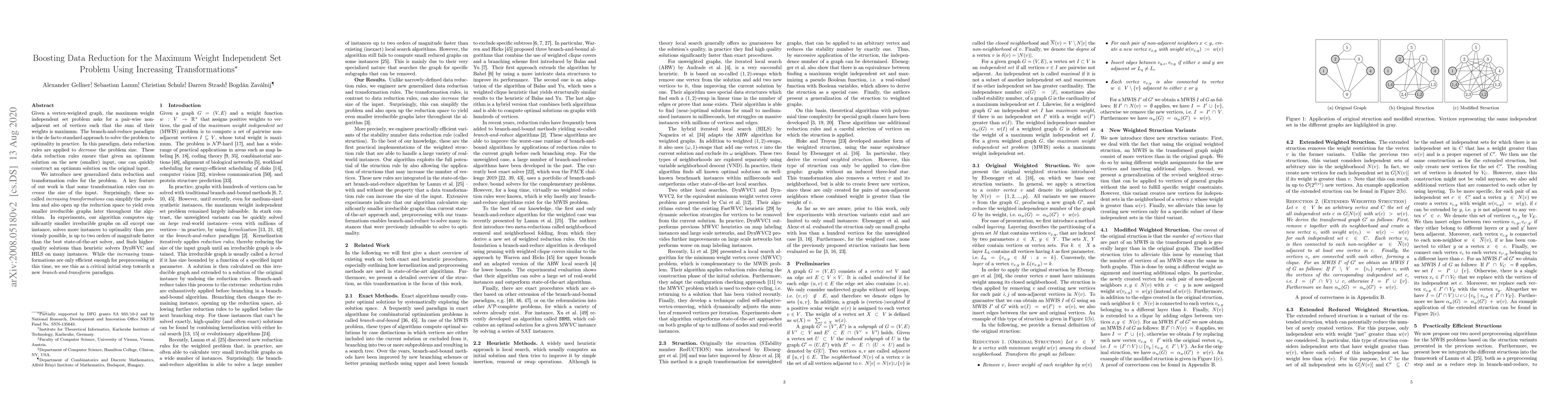 This paper introduces new data reduction and transformation rules, including surprising increasing transformations, to solve the maximum weight independent set problem more efficiently. The proposed method significantly reduces problem size, solves more instances to optimality, and outperforms existing solvers in speed and solution quality.