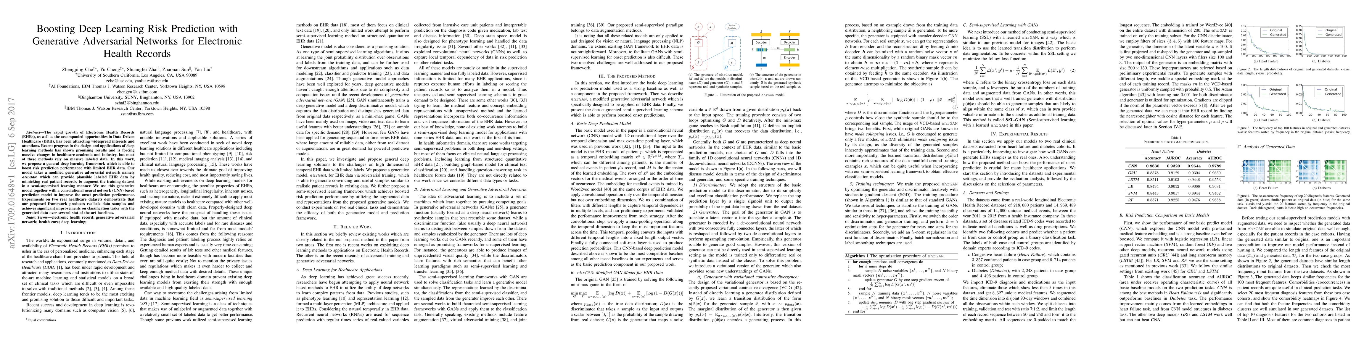 This paper proposes a deep learning framework that enhances risk prediction in Electronic Health Records (EHR) using a modified generative adversarial network (ehrGAN) to augment limited labeled data. The integration of ehrGAN with a CNN-based model significantly improves classification performance compared to state-of-the-art baselines.