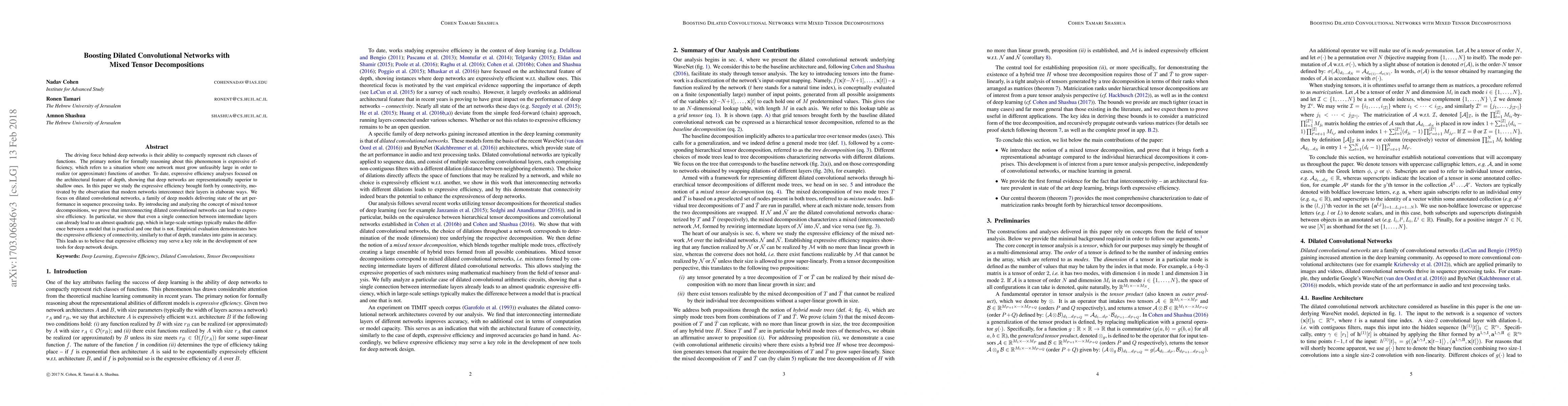 This paper investigates how interconnecting dilated convolutional networks through mixed tensor decompositions enhances expressive efficiency, demonstrating significant gains in accuracy and practical model size. The study shows that even minimal layer connections can lead to substantial improvements, suggesting that connectivity is as crucial as depth in network design.
