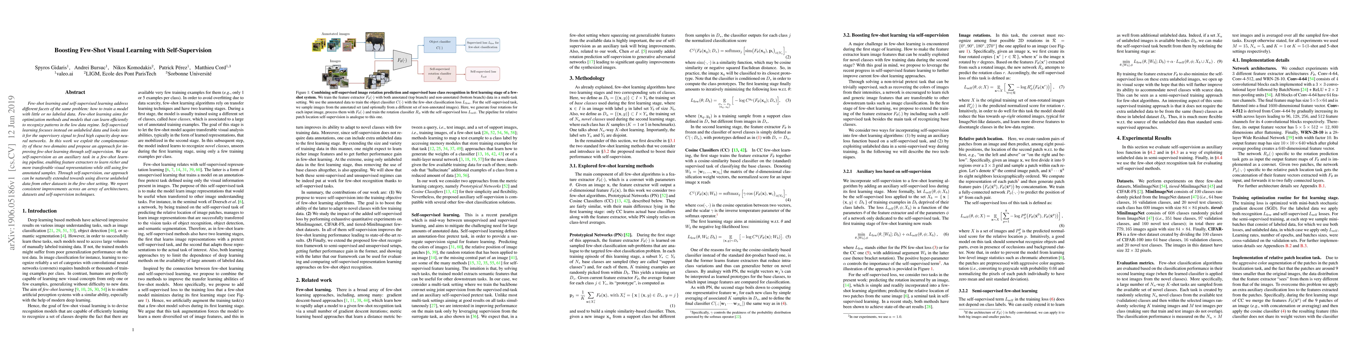 This paper proposes an approach to enhance few-shot learning by integrating self-supervised learning as an auxiliary task, enabling feature extractors to learn richer visual representations with limited labeled data. The method consistently improves performance across various architectures and datasets.