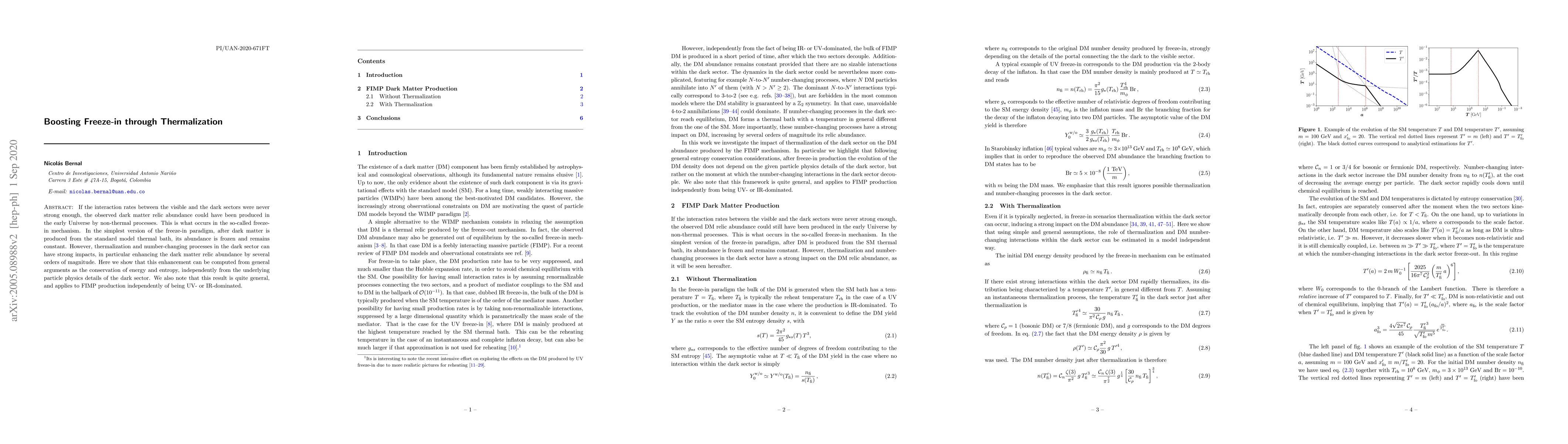 If the interaction rates between the visible and the dark sectors were never strong enough, the observed dark matter relic abundance could have been produced in the early Universe by non-thermal processes. This is what occurs in the so-called freeze-in mechanism. In the simplest version of the freeze-in paradigm, after dark matter is produced from the standard model thermal bath, its abundance is frozen and remains constant. However, thermalization and number-changing processes in the dark sector can have strong impacts, in particular enhancing the dark matter relic abundance by several orders of magnitude. Here we show that this enhancement can be computed from general arguments as the conservation of energy and entropy, independently from the underlying particle physics details of the dark sector. We also note that this result is quite general, and applies to FIMP production independently of being UV- or IR-dominated.