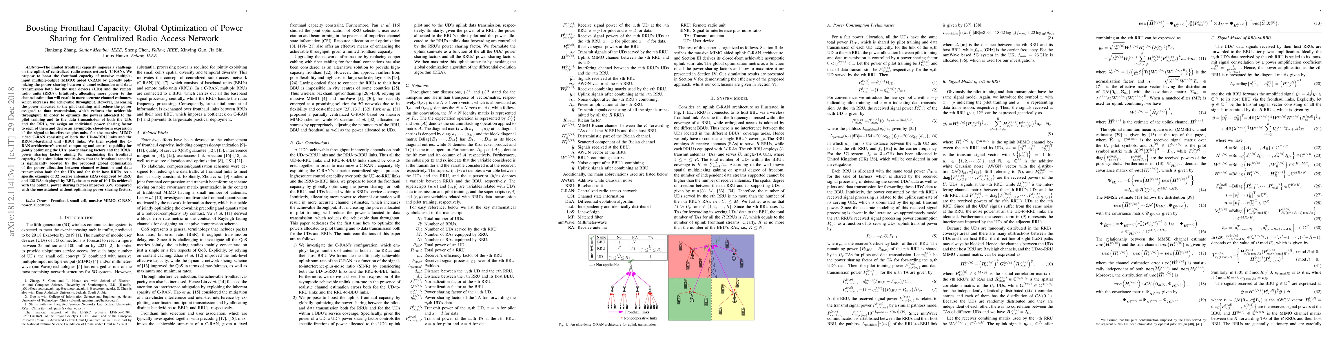 The limited fronthaul capacity imposes a challenge on the uplink of centralized radio access network (C-RAN). We propose to boost the fronthaul capacity of massive multiple-input multiple-output (MIMO) aided C-RAN by globally optimizing the power sharing between channel estimation and data transmission both for the user devices (UDs) and the remote radio units (RRUs). Intuitively, allocating more power to the channel estimation will result in more accurate channel estimates, which increases the achievable throughput. However, increasing the power allocated to the pilot training will reduce the power assigned to data transmission, which reduces the achievable throughput. In order to optimize the powers allocated to the pilot training and to the data transmission of both the UDs and the RRUs, we assign an individual power sharing factor to each of them and derive an asymptotic closed-form expression of the signal-to-interference-plus-noise for the massive MIMO aided C-RAN consisting of both the UD-to-RRU links and the RRU-to-baseband unit (BBU) links. We then exploit the C-RAN architecture's central computing and control capability for jointly optimizing the UDs' power sharing factors and the RRUs' power sharing factors aiming for maximizing the fronthaul capacity. Our simulation results show that the fronthaul capacity is significantly boosted by the proposed global optimization of the power allocation between channel estimation and data transmission both for the UDs and for their host RRUs. As a specific example of 32 receive antennas (RAs) deployed by RRU and 128 RAs deployed by BBU, the sum-rate of 10 UDs achieved with the optimal power sharing factors improves 33\% compared with the one attained without optimizing power sharing factors.