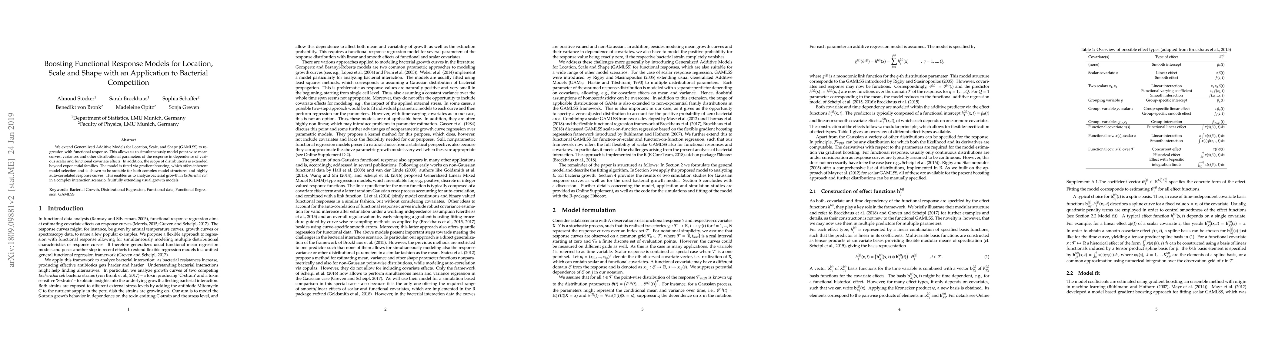 This paper extends Generalized Additive Models for Location, Scale, and Shape (GAMLSS) to functional response regression, allowing simultaneous modeling of mean curves, variances, and distributional parameters. It employs gradient boosting for model fitting, demonstrating its effectiveness in analyzing bacterial growth in Escherichia coli under complex interaction scenarios.