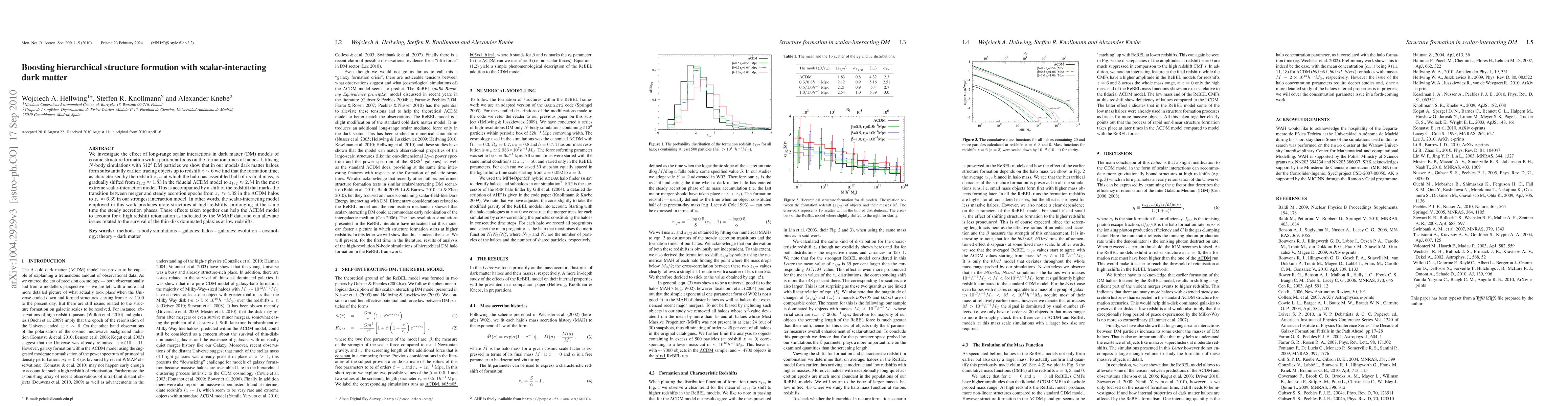 Researchers found that adding long-range scalar interactions to dark matter models can create more structures at high redshifts, potentially helping explain the WMAP data's indications of high-redshift reionisation.