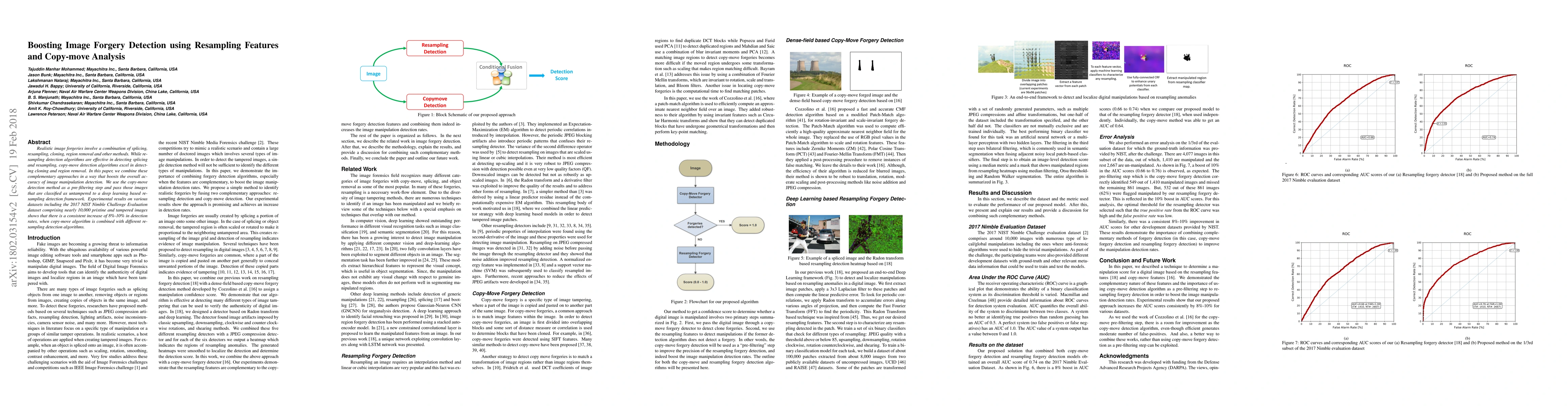 This paper proposes a method to enhance image forgery detection by combining resampling feature analysis with copy-move detection. The study shows an 8%-10% improvement in detection accuracy by using copy-move detection as a pre-filter and integrating it with deep learning-based resampling detection, as demonstrated on the 2017 NIST Nimble Challenge dataset.