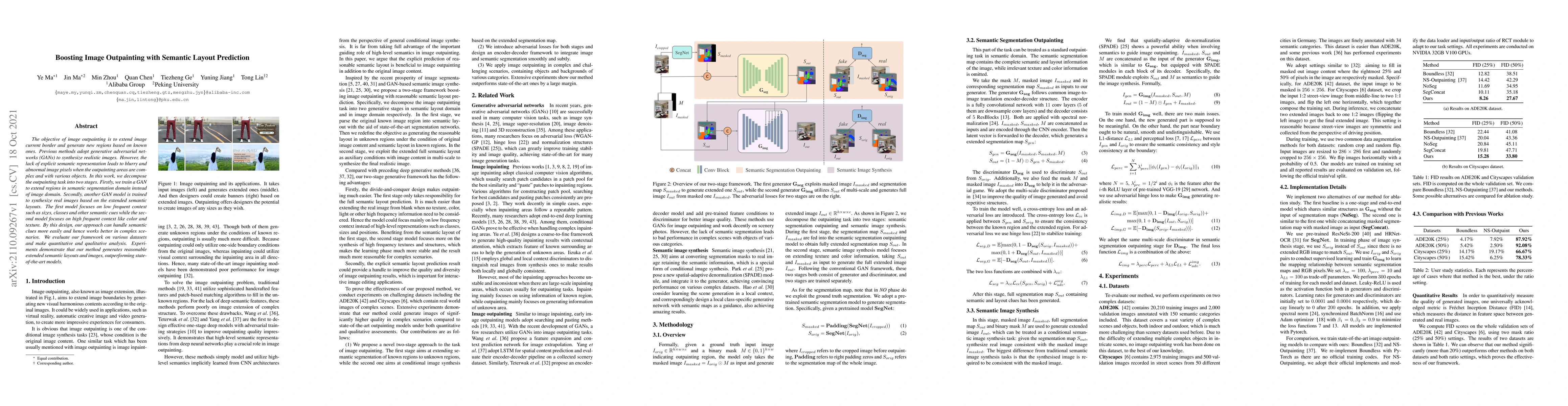 This research paper proposes a new method for image outpainting that uses semantic layout prediction to generate more realistic images. By separating the task into two stages, it improves performance on complex scenarios with multiple objects.