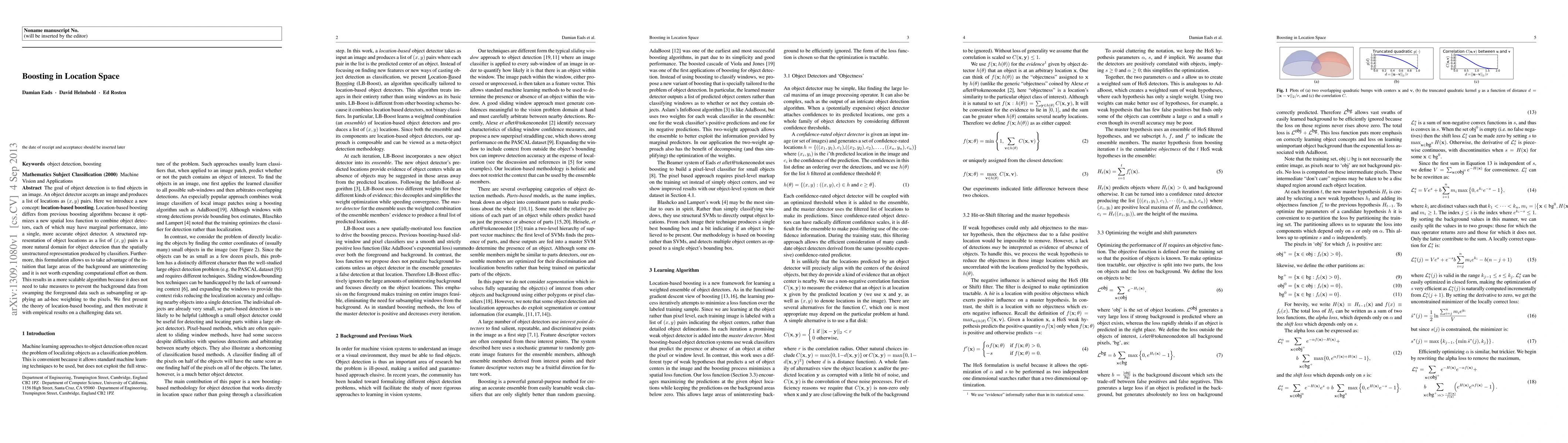 The goal of object detection is to find objects in an image. An object detector accepts an image and produces a list of locations as $(x,y)$ pairs. Here we introduce a new concept: {\bf location-based boosting}. Location-based boosting differs from previous boosting algorithms because it optimizes a new spatial loss function to combine object detectors, each of which may have marginal performance, into a single, more accurate object detector. A structured representation of object locations as a list of $(x,y)$ pairs is a more natural domain for object detection than the spatially unstructured representation produced by classifiers. Furthermore, this formulation allows us to take advantage of the intuition that large areas of the background are uninteresting and it is not worth expending computational effort on them. This results in a more scalable algorithm because it does not need to take measures to prevent the background data from swamping the foreground data such as subsampling or applying an ad-hoc weighting to the pixels. We first present the theory of location-based boosting, and then motivate it with empirical results on a challenging data set.