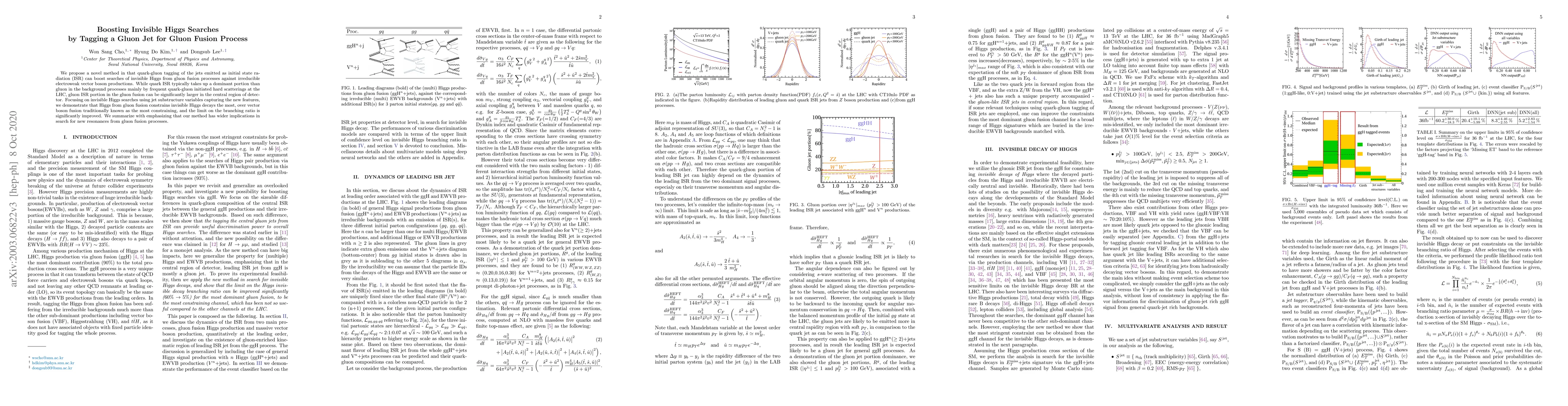 We propose a novel method in that quark-gluon tagging of the jets emitted as initial state radiation (ISR) can boost searches of invisible Higgs from gluon fusion processes against irreducible electroweak vector boson productions. While quark ISR typically takes up a dominant portion than gluon in the background processes mainly by frequent quark-gluon initiated hard scatterings at the LHC, gluon ISR portion in the gluon fusion can be significantly larger in the central region of detector. Focusing on invisible Higgs searches using jet substructure variables capturing the new features, we demonstrate that Higgs from gluon fusion constrains invisible Higgs decays the most, over vector boson fusion traditionally known as the most constraining, and the limit on the branching ratio is significantly improved. We summarize with emphasizing that our method has wider implications in search for new resonances from gluon fusion processes.