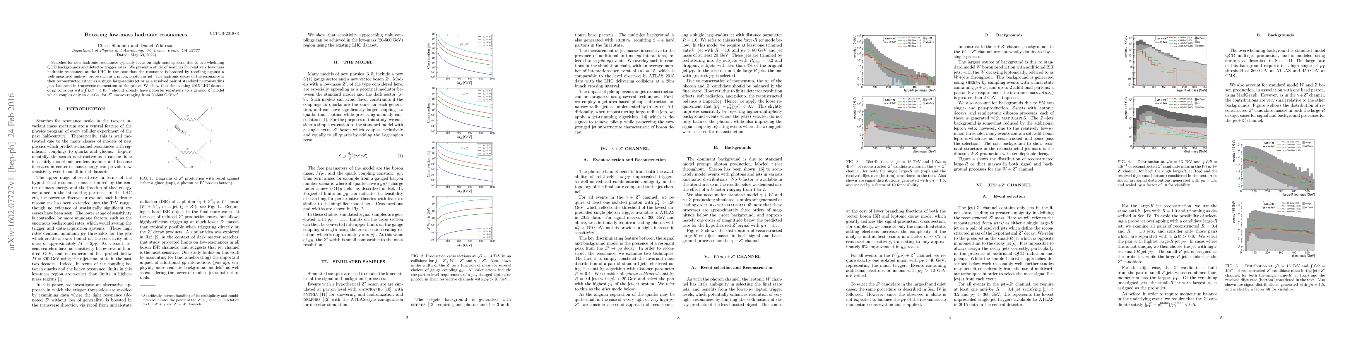 Searches for new hadronic resonances typically focus on high-mass spectra, due to overwhelming QCD backgrounds and detector trigger rates. We present a study of searches for relatively low-mass hadronic resonances at the LHC in the case that the resonance is boosted by recoiling against a well-measured high-$p_{\textrm{T}}$ probe such as a muon, photon or jet. The hadronic decay of the resonance is then reconstructed either as a single large-radius jet or as a resolved pair of standard narrow-radius jets, balanced in transverse momentum to the probe. We show that the existing 2015 LHC dataset of $pp$ collisions with $\int\mathcal{L}dt = 4\ \mathrm{fb}^{-1}$ should already have powerful sensitivity to a generic $Z'$ model which couples only to quarks, for $Z'$ masses ranging from 20-500 GeV/c$^2$.