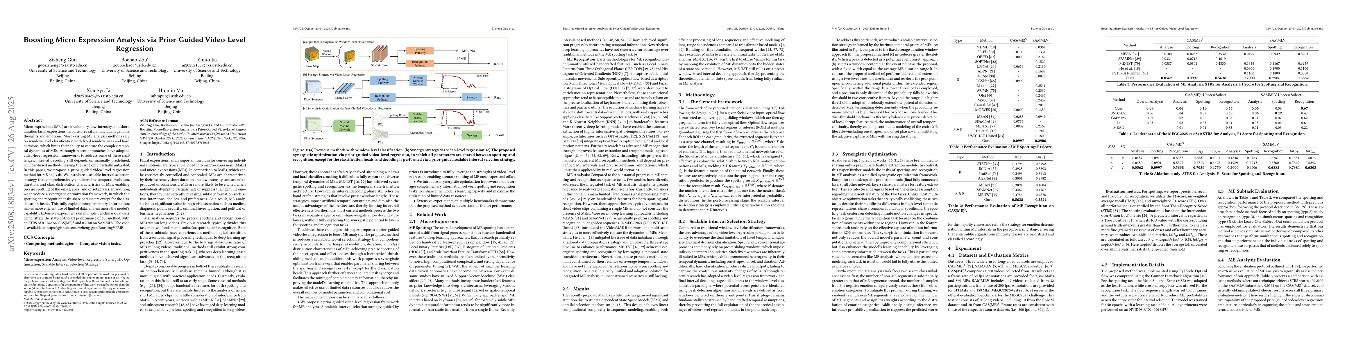 Micro-expressions (MEs) are involuntary, low-intensity, and short-duration facial expressions that often reveal an individual's genuine thoughts and emotions. Most existing ME analysis methods rely on window-level classification with fixed window sizes and hard decisions, which limits their ability to capture the complex temporal dynamics of MEs. Although recent approaches have adopted video-level regression frameworks to address some of these challenges, interval decoding still depends on manually predefined, window-based methods, leaving the issue only partially mitigated. In this paper, we propose a prior-guided video-level regression method for ME analysis. We introduce a scalable interval selection strategy that comprehensively considers the temporal evolution, duration, and class distribution characteristics of MEs, enabling precise spotting of the onset, apex, and offset phases. In addition, we introduce a synergistic optimization framework, in which the spotting and recognition tasks share parameters except for the classification heads. This fully exploits complementary information, makes more efficient use of limited data, and enhances the model's capability. Extensive experiments on multiple benchmark datasets demonstrate the state-of-the-art performance of our method, with an STRS of 0.0562 on CAS(ME)$^3$ and 0.2000 on SAMMLV. The code is available at https://github.com/zizheng-guo/BoostingVRME.