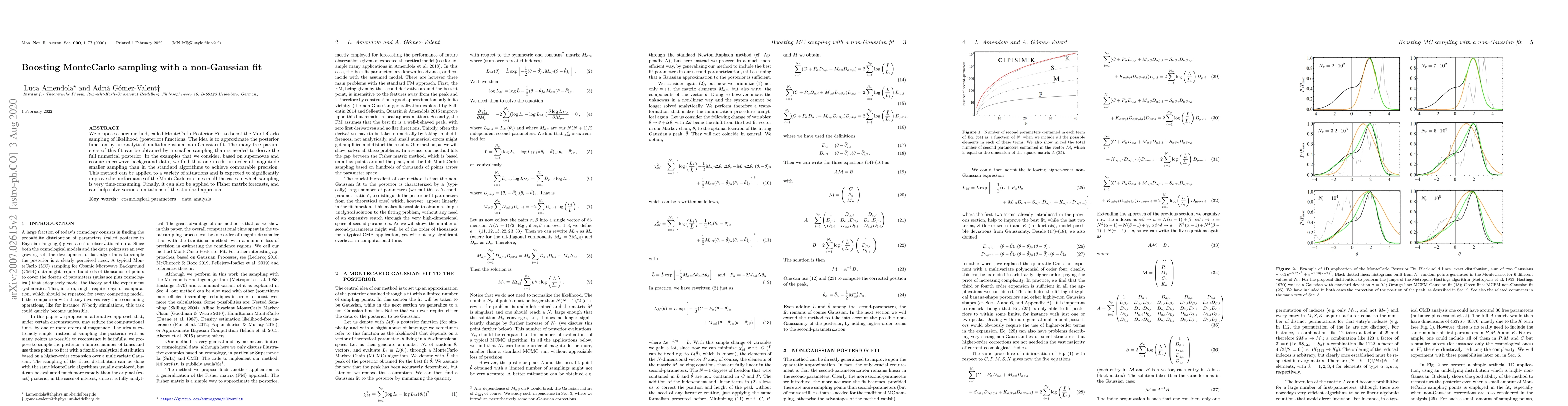 We propose a new method, called MonteCarlo Posterior Fit, to boost the MonteCarlo sampling of likelihood (posterior) functions. The idea is to approximate the posterior function by an analytical multidimensional non-Gaussian fit. The many free parameters of this fit can be obtained by a smaller sampling than is needed to derive the full numerical posterior. In the examples that we consider, based on supernovae and cosmic microwave background data, we find that one needs an order of magnitude smaller sampling than in the standard algorithms to achieve comparable precision. This method can be applied to a variety of situations and is expected to significantly improve the performance of the MonteCarlo routines in all the cases in which sampling is very time-consuming. Finally, it can also be applied to Fisher matrix forecasts, and can help solve various limitations of the standard approach.