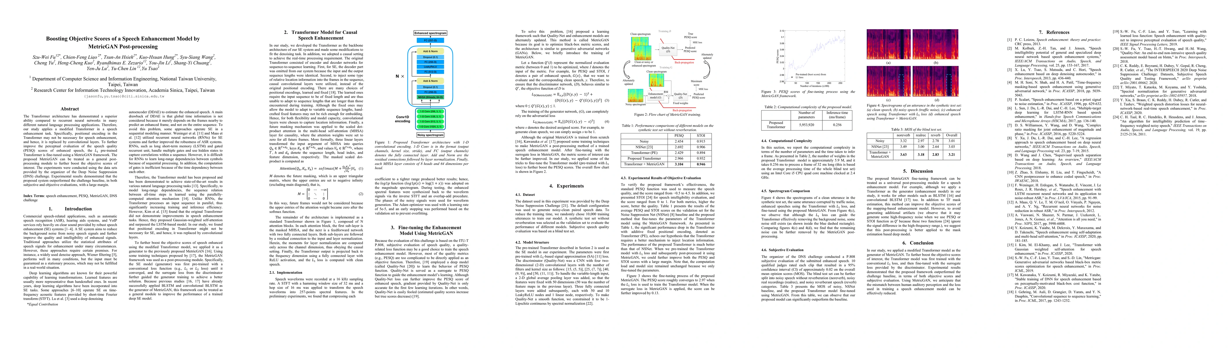 This study applies a modified Transformer with convolutional layers instead of positional encoding for speech enhancement, fine-tuning it using a MetricGAN framework to boost objective scores. Experiments on the Deep Noise Suppression challenge dataset showed a significant improvement over the baseline, demonstrating enhanced speech quality.