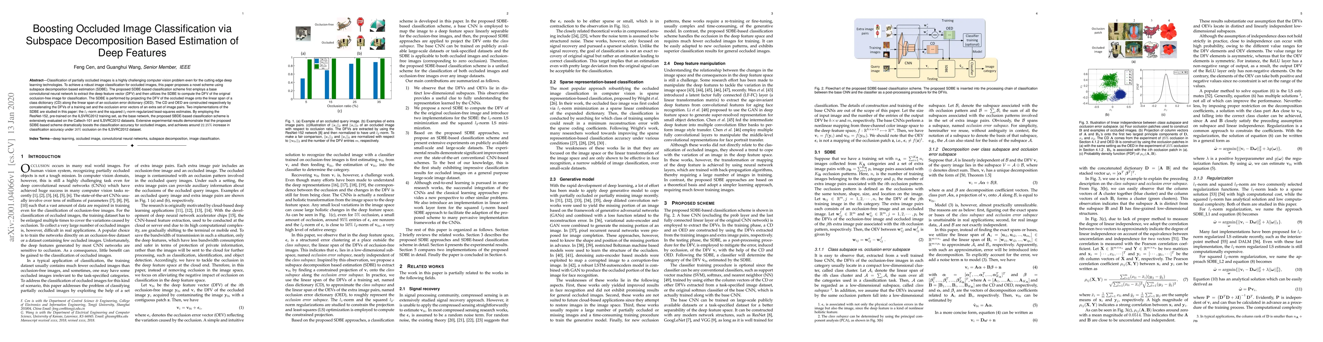 A new method called subspace decomposition based estimation (SDBE) is proposed to improve image classification accuracy for images that are partially occluded. It achieves a 22.25% increase in accuracy under $20/%$ occlusion on the ILSVRC2012 dataset.