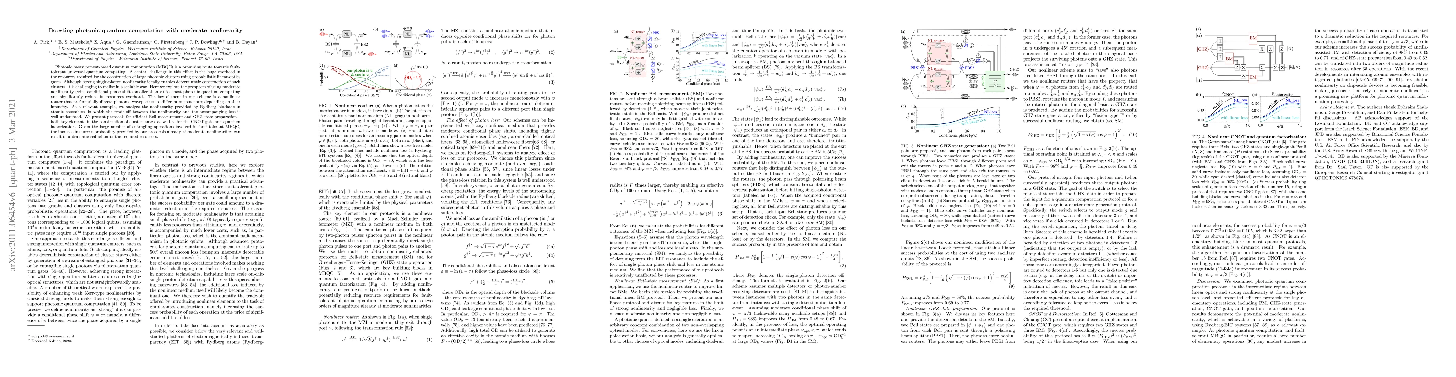 Photonic measurement-based quantum computation (MBQC) is a promising route towards fault-tolerant universal quantum computing. A central challenge in this effort is the huge overhead in the resources required for the construction of large photonic clusters using probabilistic linear-optics gates. Although strong single-photon nonlinearity ideally enables deterministic construction of such clusters, it is challenging to realise in a scalable way. Here we explore the prospects of using moderate nonlinearity (with conditional phase shifts smaller than $\pi$) to boost photonic quantum computing and significantly reduce its resources overhead. The key element in our scheme is a nonlinear router that preferentially directs photonic wavepackets to different output ports depending on their intensity. As a relevant example, we analyze the nonlinearity provided by Rydberg blockade in atomic ensembles, in which the trade-off between the nonlinearity and the accompanying loss is well understood. We present protocols for efficient Bell measurement and GHZ-state preparation -- both key elements in the construction of cluster states, as well as for the CNOT gate and quantum factorization. Given the large number of entangling operations involved in fault-tolerant MBQC, the increase in success probability provided by our protocols already at moderate nonlinearity can result in a dramatic reduction in the required resources.