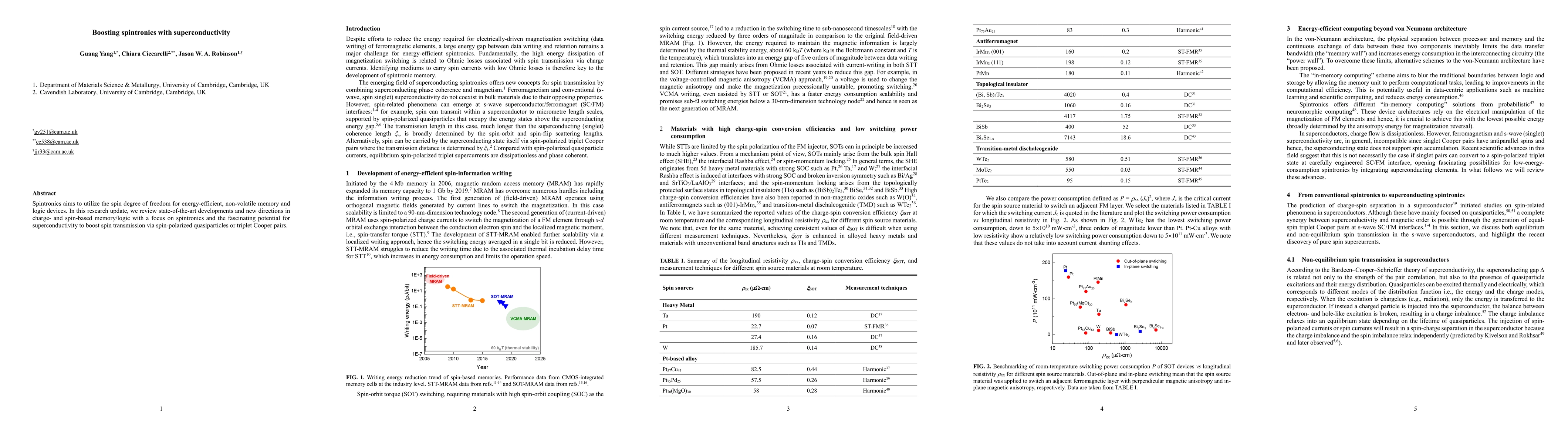 Spintronics aims to utilize the spin degree of freedom for energy-efficient, non-volatile memory and logic devices. In this research update, we review state-of-the-art developments and new directions in charge- and spin-based memory/logic with a focus on spintronics and the fascinating potential for superconductivity to boost spin transmission via spin-polarized quasiparticles or triplet Cooper pairs.