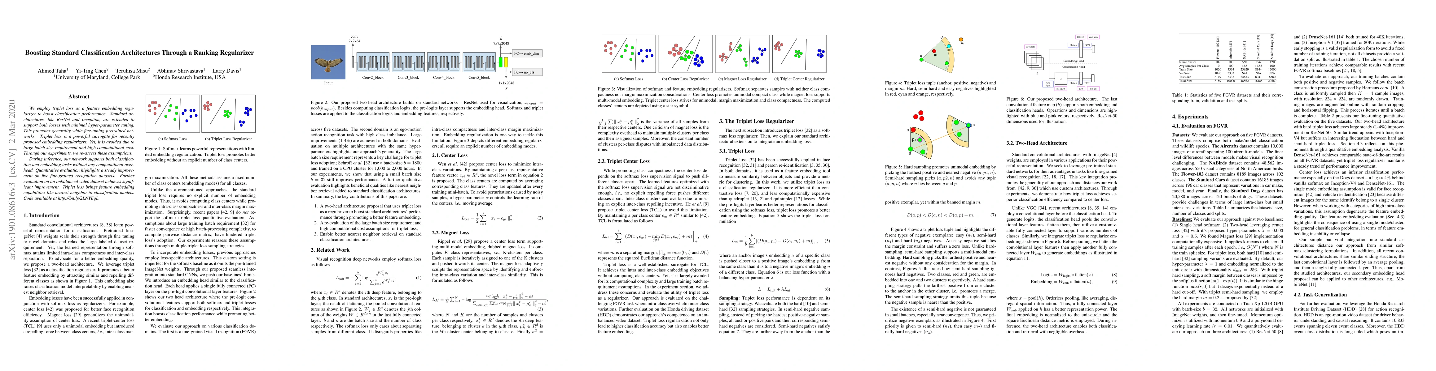 This paper introduces a ranking regularizer using triplet loss to improve classification performance without requiring large batch sizes or computational cost. Experiments show steady improvements on fine-grained recognition datasets with significant gains on an imbalanced video dataset.