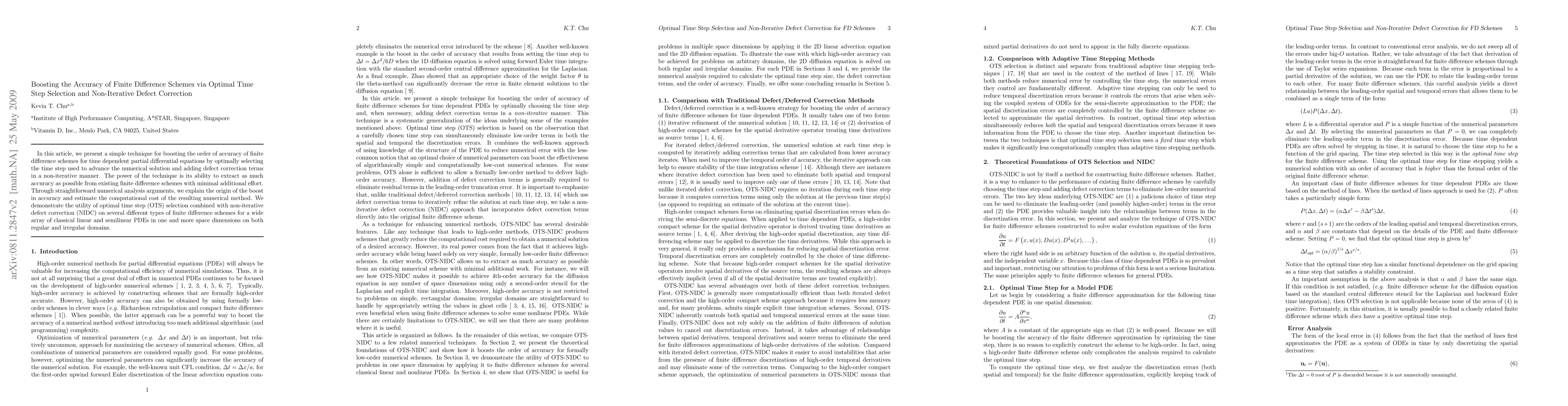 This paper introduces a method to enhance the accuracy of finite difference schemes for solving time-dependent PDEs by optimally selecting the time step and incorporating non-iterative defect correction. The technique aims to maximize accuracy with minimal computational overhead, demonstrated through various PDEs and domains.