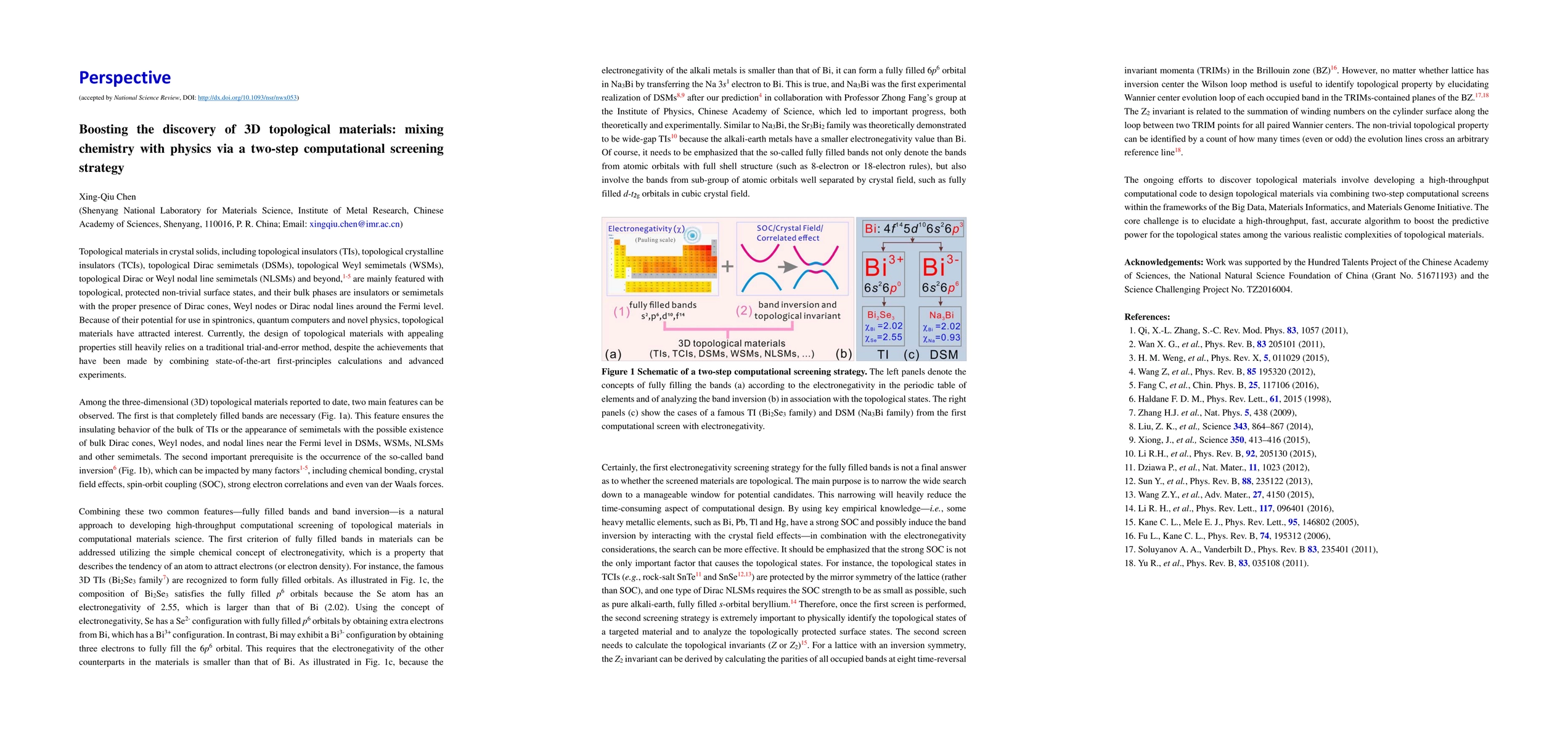 Topological materials in crystal solids, including topological insulators (TIs), topological crystalline insulators (TCIs), topological Dirac semimetals (DSMs), topological Weyl semimetals (WSMs), topological Dirac or Weyl nodal line semimetals (NLSMs) and beyond, are mainly featured with topological, protected non-trivial surface states, and their bulk phases are insulators or semimetals with the proper presence of Dirac cones, Weyl nodes or Dirac nodal lines around the Fermi level. The author suggests a two-step computational screening strategy of 3D topological materials by mixing chemistry with physics with the considerations of fully filled bands and band inversion.