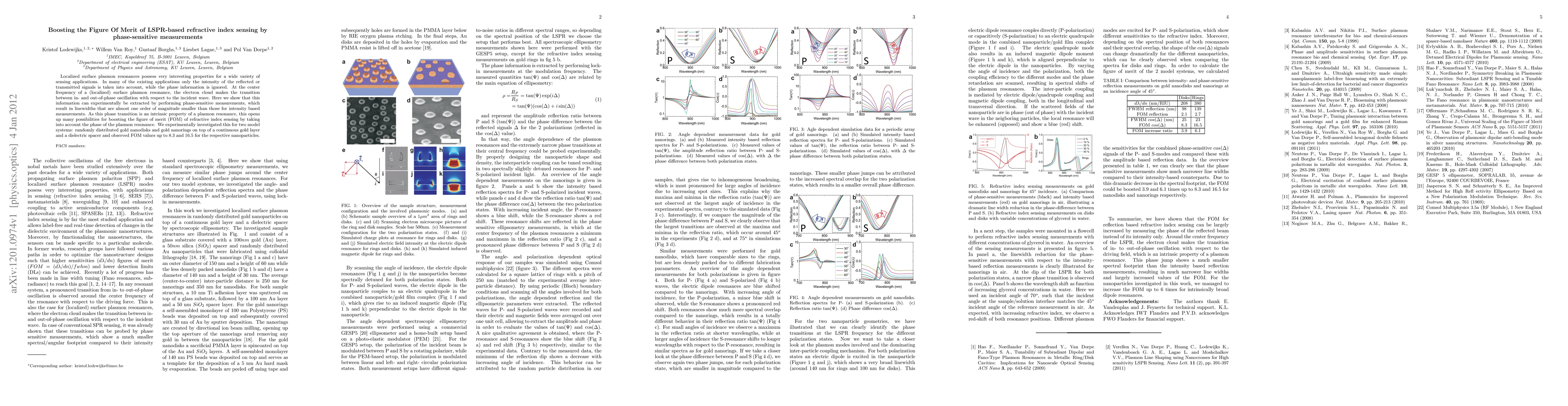 Localized surface plasmon resonances possess very interesting properties for a wide variety of sensing applications. In many of the existing applications only the intensity of the reflected or transmitted signals is taken into account, while the phase information is ignored. At the center frequency of a (localized) surface plasmon resonance, the electron cloud makes the transition between in- and out-of-phase oscillation with respect to the incident wave. Here we show that this information can experimentally be extracted by performing phase-sensitive measurements, which result in linewidths that are almost one order of magnitude smaller than those for intensity based measurements. As this phase transition is an intrinsic property of a plasmon resonance, this opens up many possibilities for boosting the figure of merit (FOM) of refractive index sensing by taking into account the phase of the plasmon resonance. We experimentally investigated this for two model systems: randomly distributed gold nanodisks and gold nanorings on top of a continuous gold layer and a dielectric spacer and observed FOM values up to 8.3 and 16.5 for the respective nanoparticles.