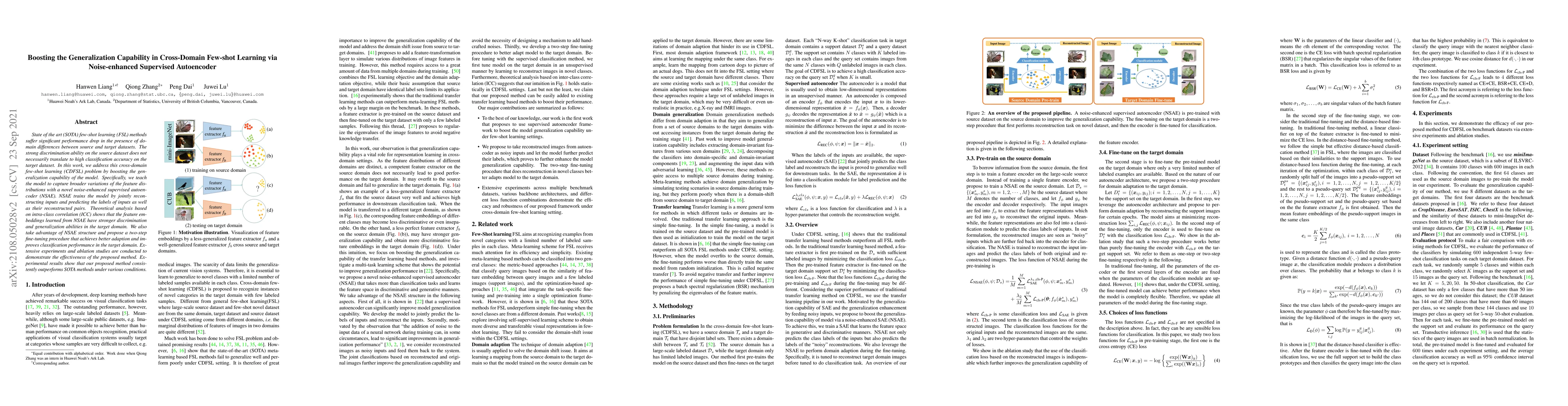 This paper proposes a new method to improve few-shot learning performance across different domains by using a noise-enhanced supervised autoencoder. It achieves better results than state-of-the-art methods in various conditions.