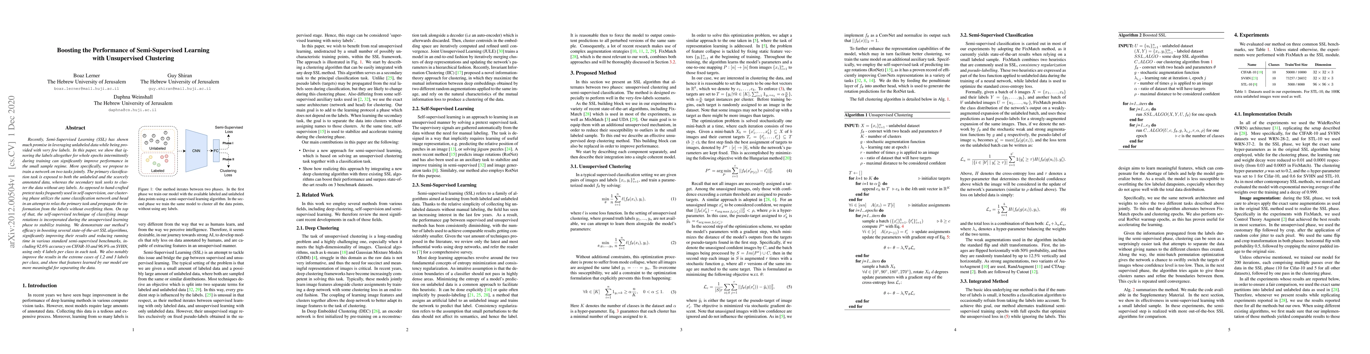 Recently, Semi-Supervised Learning (SSL) has shown much promise in leveraging unlabeled data while being provided with very few labels. In this paper, we show that ignoring the labels altogether for whole epochs intermittently during training can significantly improve performance in the small sample regime. More specifically, we propose to train a network on two tasks jointly. The primary classification task is exposed to both the unlabeled and the scarcely annotated data, whereas the secondary task seeks to cluster the data without any labels. As opposed to hand-crafted pretext tasks frequently used in self-supervision, our clustering phase utilizes the same classification network and head in an attempt to relax the primary task and propagate the information from the labels without overfitting them. On top of that, the self-supervised technique of classifying image rotations is incorporated during the unsupervised learning phase to stabilize training. We demonstrate our method's efficacy in boosting several state-of-the-art SSL algorithms, significantly improving their results and reducing running time in various standard semi-supervised benchmarks, including 92.6% accuracy on CIFAR-10 and 96.9% on SVHN, using only 4 labels per class in each task. We also notably improve the results in the extreme cases of 1,2 and 3 labels per class, and show that features learned by our model are more meaningful for separating the data.
