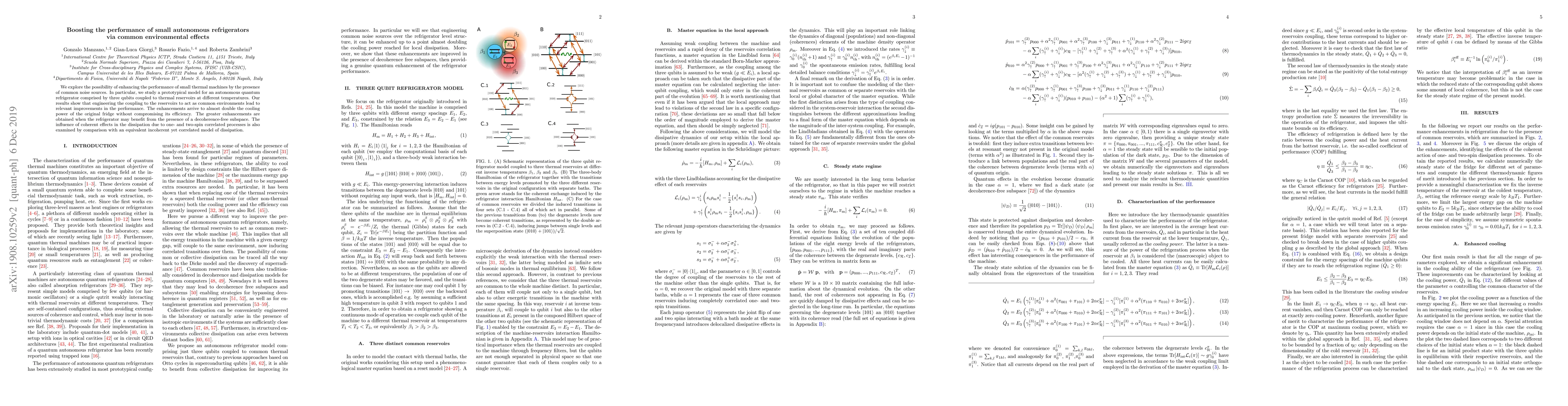 We explore the possibility of enhancing the performance of small thermal machines by the presence of common noise sources. In particular, we study a prototypical model for an autonomous quantum refrigerator comprised by three qubits coupled to thermal reservoirs at different temperatures. Our results show that engineering the coupling to the reservoirs to act as common environments lead to relevant improvements in the performance. The enhancements arrive to almost double the cooling power of the original fridge without compromising its efficiency. The greater enhancements are obtained when the refrigerator may benefit from the presence of a decoherence-free subspace. The influence of coherent effects in the dissipation due to one- and two-spin correlated processes is also examined by comparison with an equivalent incoherent yet correlated model of dissipation.