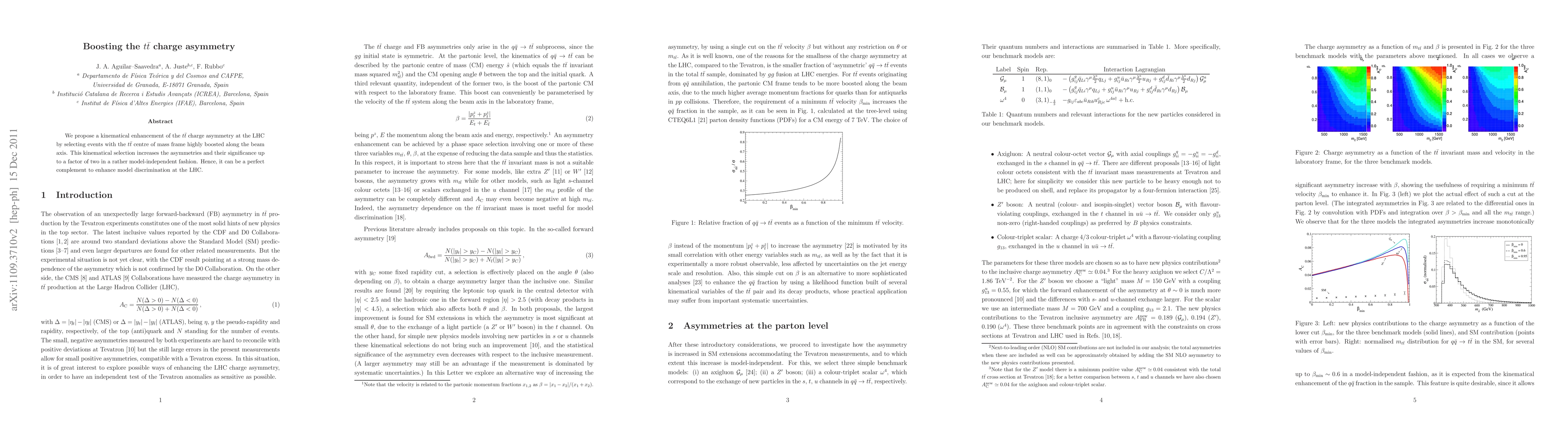 We propose a kinematical enhancement of the t tbar charge asymmetry at the LHC by selecting events with the t tbar centre of mass frame highly boosted along the beam axis. This kinematical selection increases the asymmetries and their significance up to a factor of two in a rather model-independent fashion. Hence, it can be a perfect complement to enhance model discrimination at the LHC.