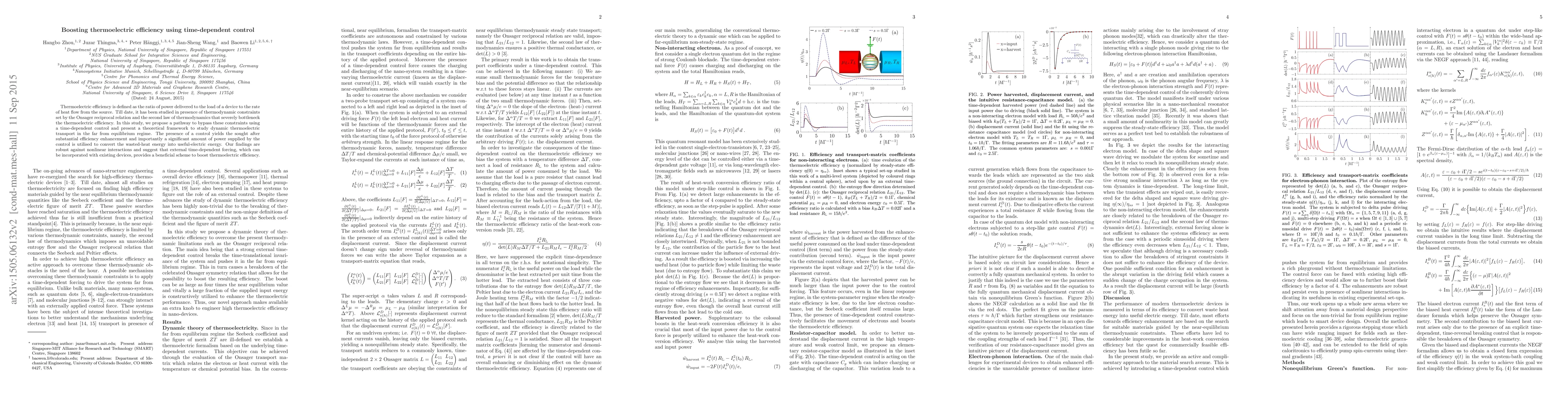This paper proposes a method to enhance thermoelectric efficiency by employing time-dependent control, bypassing traditional thermodynamic constraints. The study presents a theoretical framework for dynamic thermoelectric transport, demonstrating substantial efficiency improvements and effective conversion of wasted heat into useful electric energy.