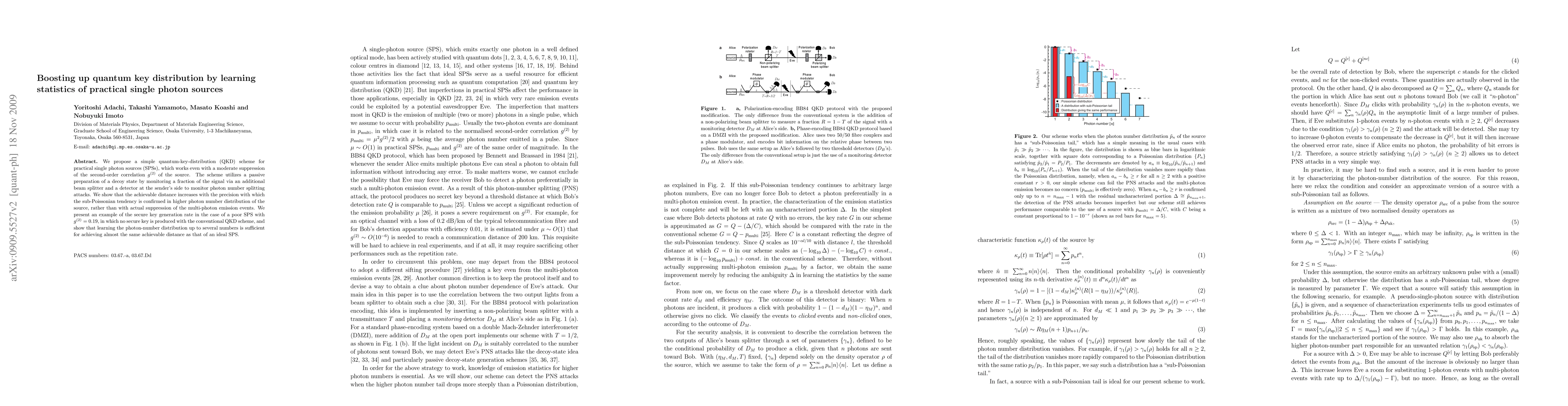 This paper proposes a novel quantum-key-distribution scheme that enhances security by learning the statistical properties of practical single photon sources, even with moderate second-order correlation suppression. The method employs decoy states and monitoring to counter photon number splitting attacks, demonstrating increased secure key generation rates even for suboptimal sources.