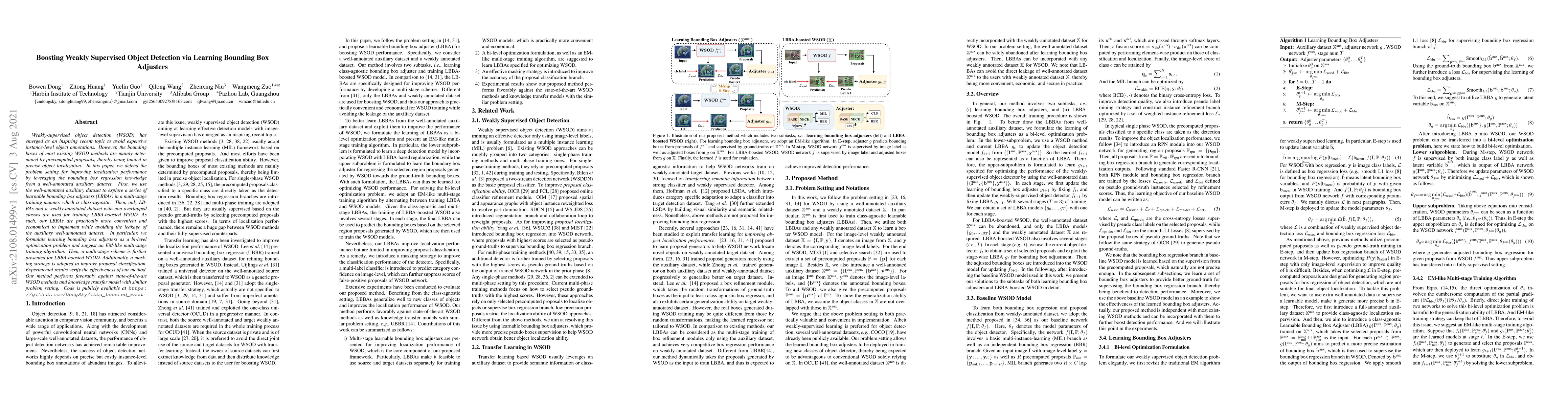 This paper proposes a method to improve weakly supervised object detection by learning bounding box adjusters from a well-annotated auxiliary dataset, achieving better localization performance than existing methods.