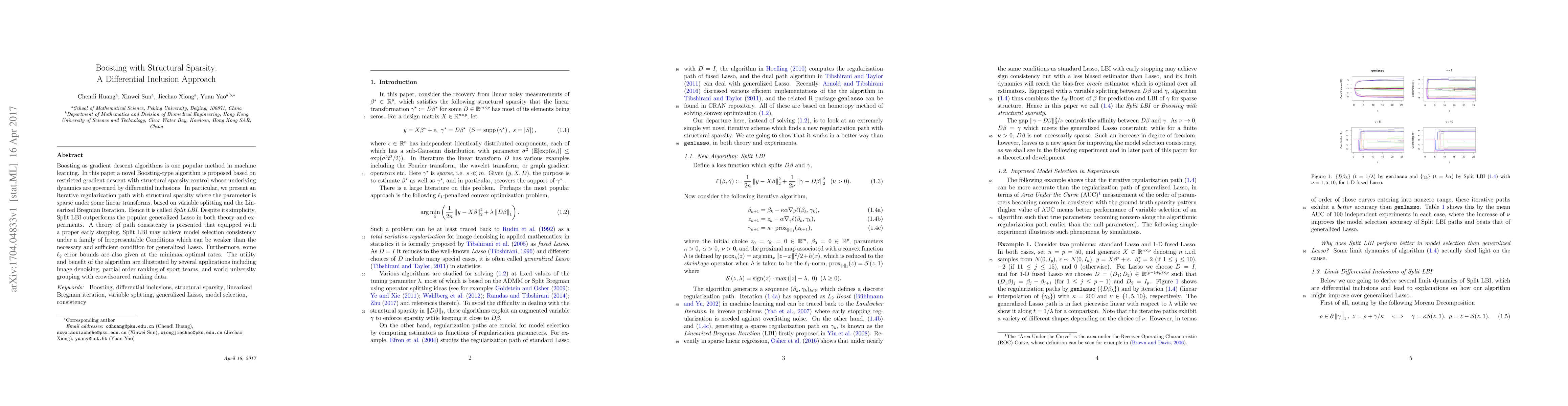 A new machine learning algorithm called Split LBI is proposed, which outperforms popular methods in both theory and experiments, offering improved model selection consistency and error bounds for applications such as image denoising and ranking data.