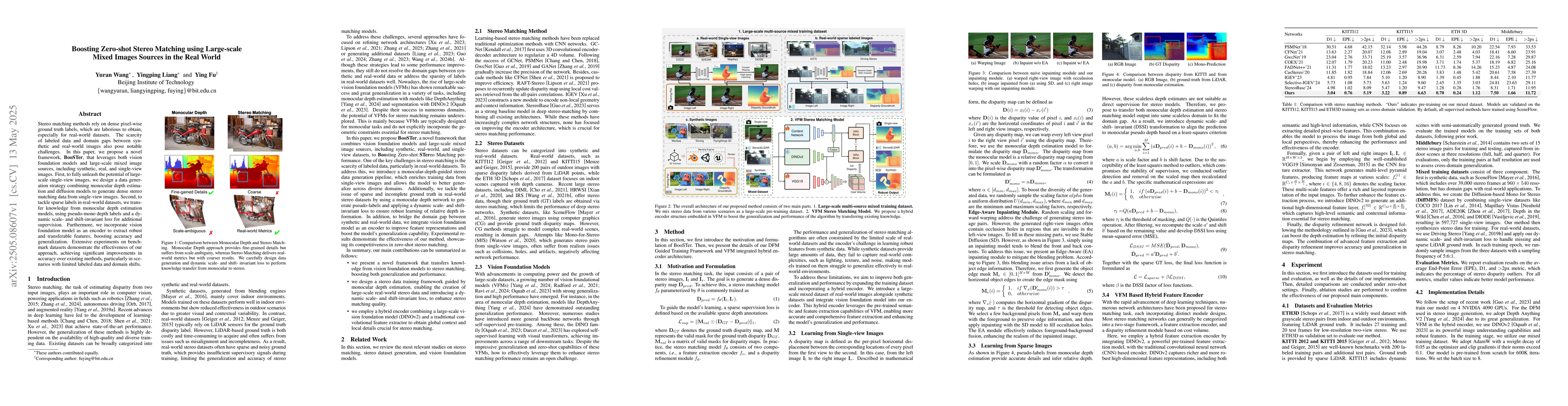 This work is novel by integrating large-scale mixed image sources, a data generation strategy using monocular depth estimation and diffusion models, and the incorporation of vision foundation models, addressing key challenges in stereo matching with limited labeled data and domain gaps.