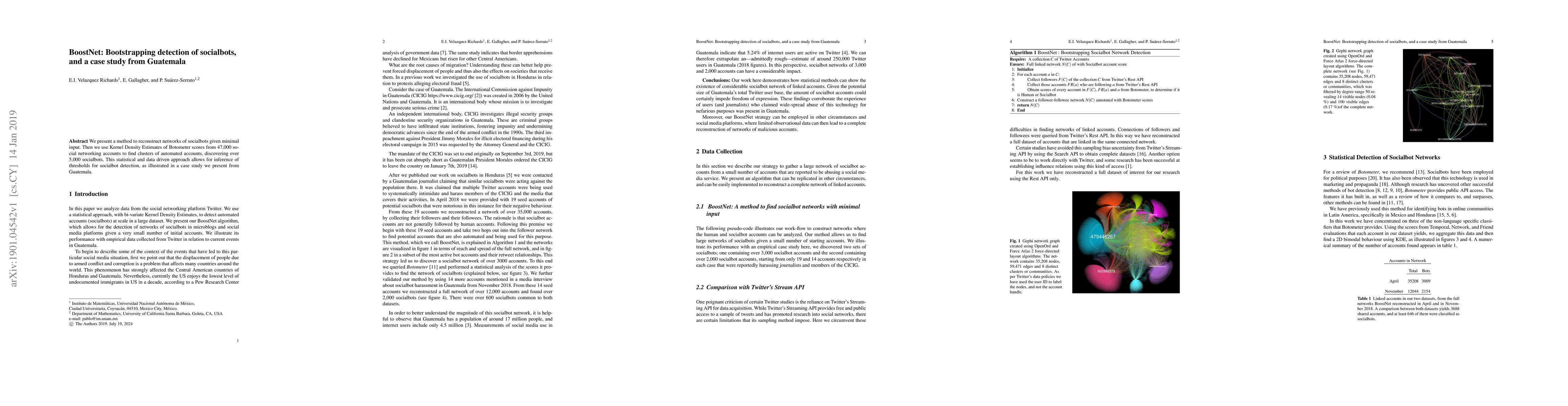 We present a method to reconstruct networks of socialbots given minimal input. Then we use Kernel Density Estimates of Botometer scores from 47,000 social networking accounts to find clusters of automated accounts, discovering over 5,000 socialbots. This statistical and data driven approach allows for inference of thresholds for socialbot detection, as illustrated in a case study we present from Guatemala.