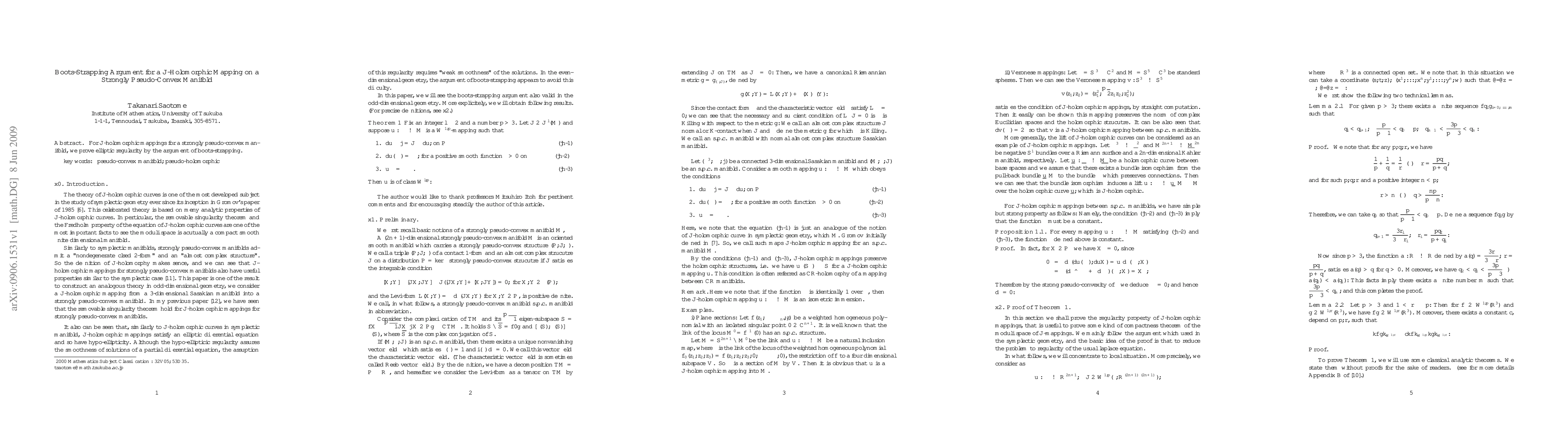For $J$-holomorphic mappings for a strongly pseudo-convex manifold, we prove elliptic regularity by the argument of boots-strapping.