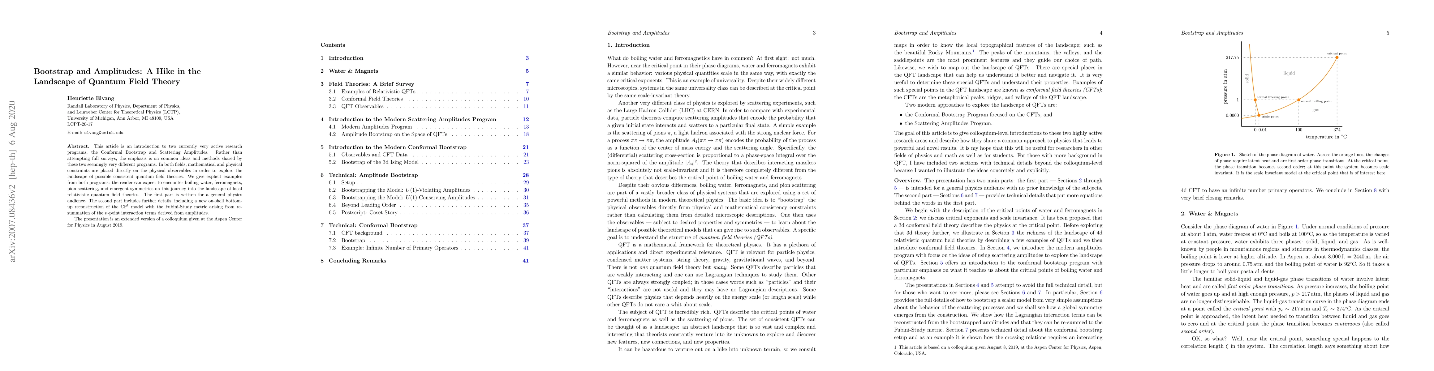 This article is an introduction to two currently very active research programs, the Conformal Bootstrap and Scattering Amplitudes. Rather than attempting full surveys, the emphasis is on common ideas and methods shared by these two seemingly very different programs. In both fields, mathematical and physical constraints are placed directly on the physical observables in order to explore the landscape of possible consistent quantum field theories. We give explicit examples from both programs: the reader can expect to encounter boiling water, ferromagnets, pion scattering, and emergent symmetries on this journey into the landscape of local relativistic quantum field theories. The first part is written for a general physics audience. The second part includes further details, including a new on-shell bottom-up reconstruction of the $\mathbb{CP}^1$ model with the Fubini-Study metric arising from re-summation of the $n$-point interaction terms derived from amplitudes.