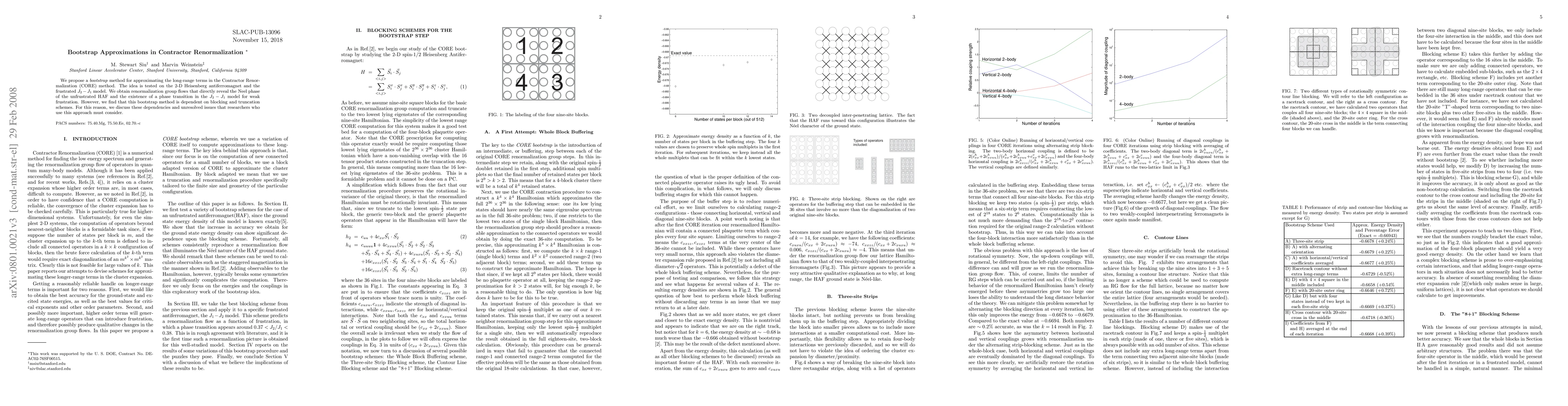 This paper proposes a bootstrap method to approximate long-range terms in the Contractor Renormalization method, tested on the 2-D Heisenberg antiferromagnet and the J_2-J_1 model, revealing Neel phase and a phase transition. However, the method's effectiveness is contingent on specific blocking and truncation schemes, highlighting unresolved issues for future research.