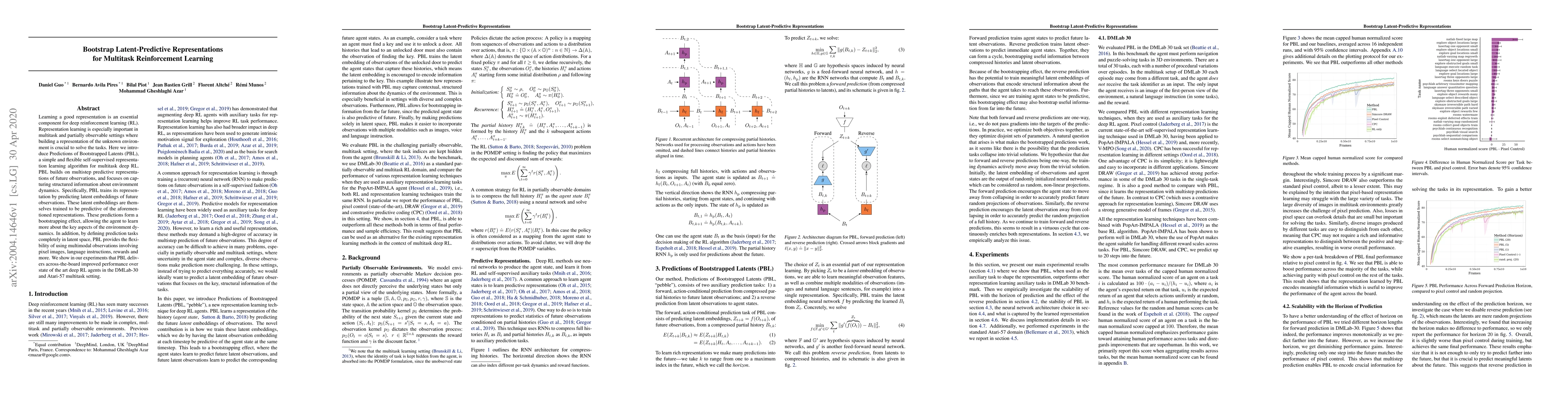 This paper introduces Prediction of Bootstrap Latent (PBL), a self-supervised representation learning algorithm for multitask reinforcement learning, which leverages multistep predictive representations to capture environment dynamics. PBL demonstrates improved performance over state-of-the-art methods in multitask settings like DMLab-30 and Atari-57.
