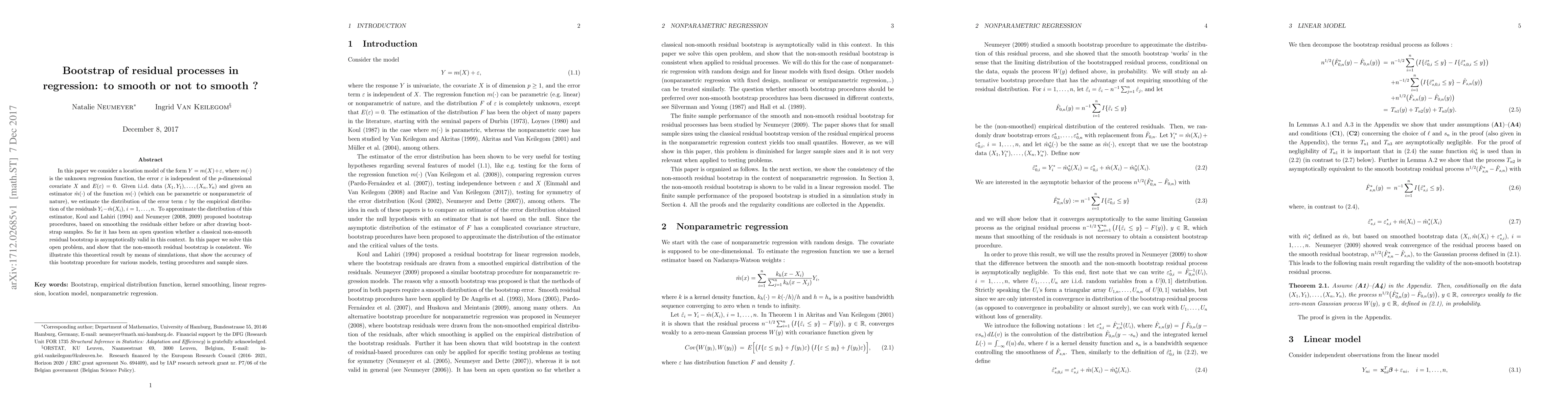 In this paper we consider a location model of the form $Y = m(X) + \varepsilon$, where $m(\cdot)$ is the unknown regression function, the error $\varepsilon$ is independent of the $p$-dimensional covariate $X$ and $E(\varepsilon)=0$. Given i.i.d. data $(X_1,Y_1),\ldots,(X_n,Y_n)$ and given an estimator $\hat m(\cdot)$ of the function $m(\cdot)$ (which can be parametric or nonparametric of nature), we estimate the distribution of the error term $\varepsilon$ by the empirical distribution of the residuals $Y_i-\hat m(X_i)$, $i=1,\ldots,n$. To approximate the distribution of this estimator, Koul and Lahiri (1994) and Neumeyer (2008, 2009) proposed bootstrap procedures, based on smoothing the residuals either before or after drawing bootstrap samples. So far it has been an open question whether a classical non-smooth residual bootstrap is asymptotically valid in this context. In this paper we solve this open problem, and show that the non-smooth residual bootstrap is consistent. We illustrate this theoretical result by means of simulations, that show the accuracy of this bootstrap procedure for various models, testing procedures and sample sizes.