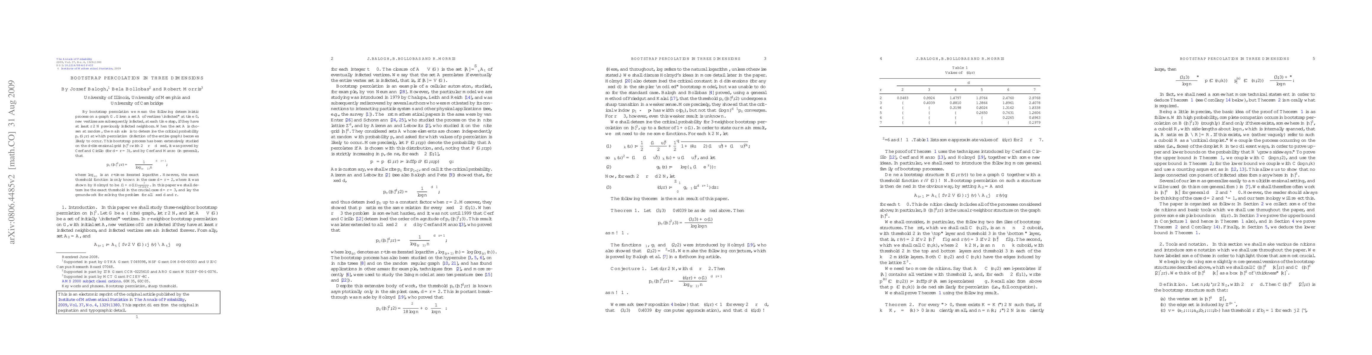 The paper provides a detailed analysis and proof for the exact threshold function of bootstrap percolation in three dimensions, extending previous work to this critical case.