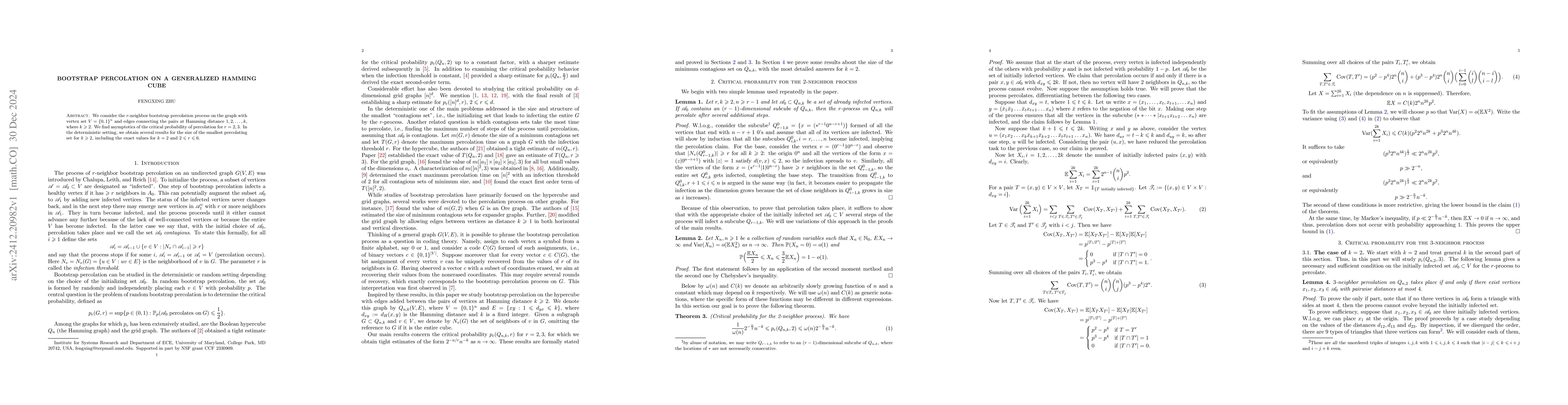 This paper studies the $r$-neighbor bootstrap percolation on a generalized Hamming cube where edges connect pairs at Hamming distances up to $k$. It finds the critical probability for $r=2,3$ and determines the size of the smallest percolating set, providing exact values for $k=2$ and $2\le r\le 6$.