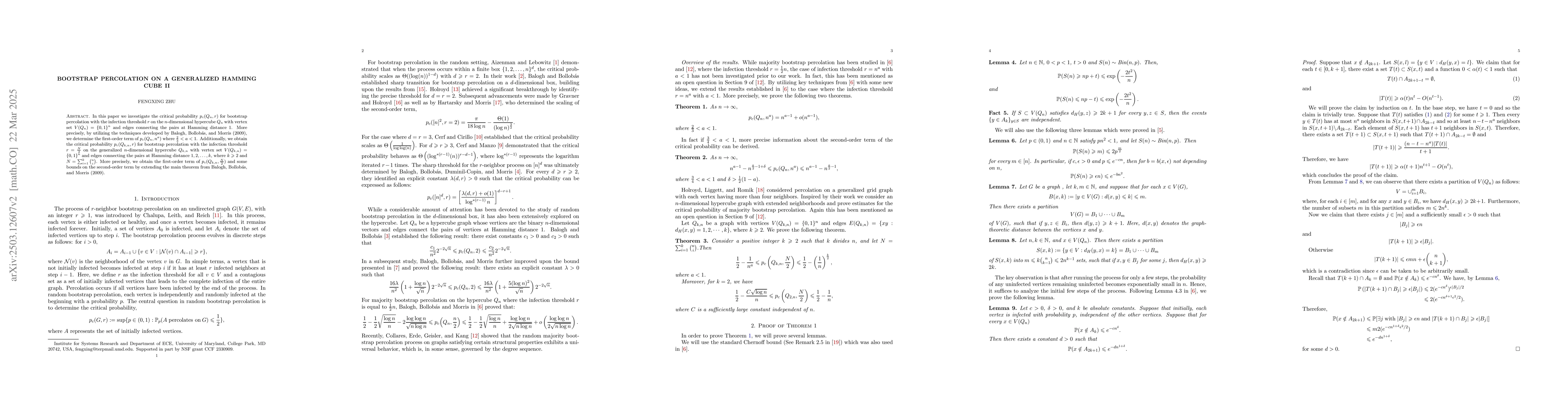The work introduces a novel approach to bootstrap percolation analysis on generalized Hamming cubes, extending previous results to a broader class of graphs and providing bounds on higher-order terms.