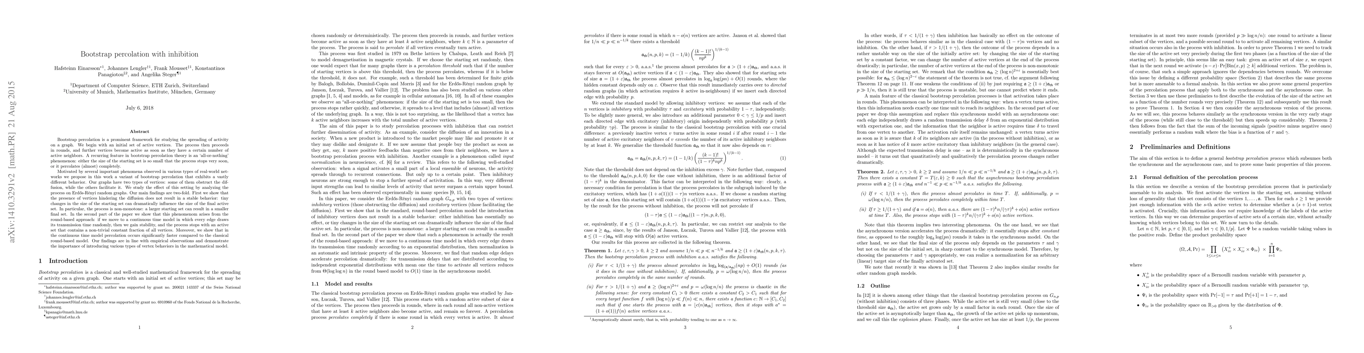 Bootstrap percolation is a prominent framework for studying the spreading of activity on a graph. We begin with an initial set of active vertices. The process then proceeds in rounds, and further vertices become active as soon as they have a certain number of active neighbors. A recurring feature in bootstrap percolation theory is an `all-or-nothing' phenomenon: either the size of the starting set is so small that the process stops very soon, or it percolates (almost) completely. Motivated by several important phenomena observed in various types of real-world networks we propose in this work a variant of bootstrap percolation that exhibits a vastly different behavior. Our graphs have two types of vertices: some of them obstruct the diffusion, while the others facilitate it. We study the effect of this setting by analyzing the process on Erd\H{o}s-R\'enyi random graphs. Our main findings are two-fold. First we show that the presence of vertices hindering the diffusion does not result in a stable behavior: tiny changes in the size of the starting set can dramatically influence the size of the final active set. In particular, the process is non-monotone: a larger starting set can result in a smaller final set. In the second part of the paper we show that this phenomenom arises from the round-based approach: if we move to a continuous time model in which every edge draws its transmission time randomly, then we gain stability, and the process stops with an active set that contains a non-trivial constant fraction of all vertices. Moreover, we show that in the continuous time model percolation occurs significantly faster compared to the classical round-based model. Our findings are in line with empirical observations and demonstrate the importance of introducing various types of vertex behaviors in the mathematical model.