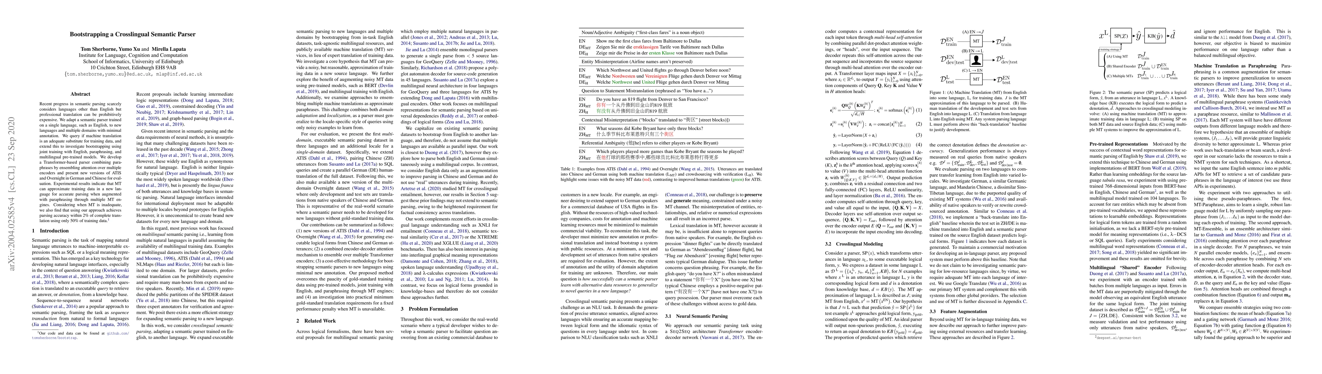 Recent progress in semantic parsing scarcely considers languages other than English but professional translation can be prohibitively expensive. We adapt a semantic parser trained on a single language, such as English, to new languages and multiple domains with minimal annotation. We query if machine translation is an adequate substitute for training data, and extend this to investigate bootstrapping using joint training with English, paraphrasing, and multilingual pre-trained models. We develop a Transformer-based parser combining paraphrases by ensembling attention over multiple encoders and present new versions of ATIS and Overnight in German and Chinese for evaluation. Experimental results indicate that MT can approximate training data in a new language for accurate parsing when augmented with paraphrasing through multiple MT engines. Considering when MT is inadequate, we also find that using our approach achieves parsing accuracy within 2% of complete translation using only 50% of training data.