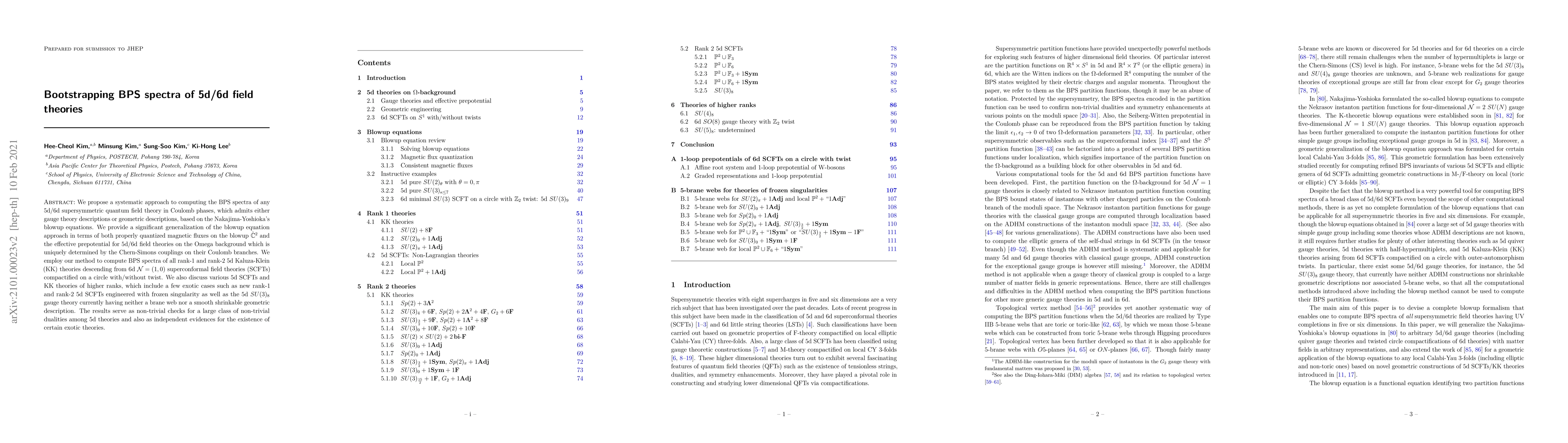 This paper proposes a method for computing BPS spectra in 5d/6d supersymmetric field theories using Nakajima-Yoshioka's blowup equations, generalized to include quantized magnetic fluxes and effective prepotentials. The method is applied to rank-1 and rank-2 5d Kaluza-Klein theories derived from 6d $\mathcal{N}=(1,0)$ superconformal field theories, providing independent evidence for exotic theories and checks for dualities.