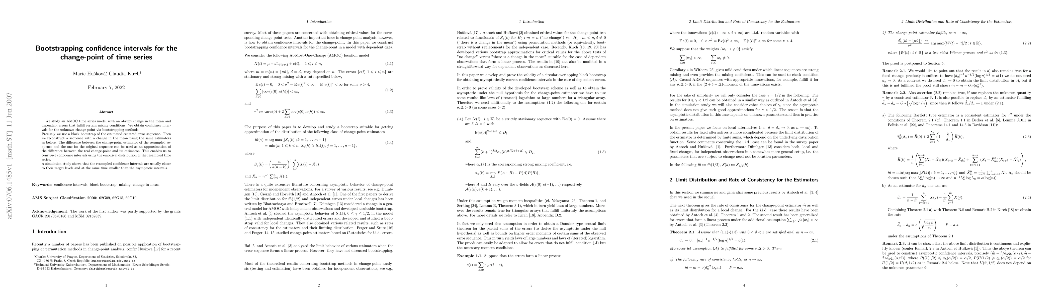 This paper develops bootstrapping methods to construct confidence intervals for the change-point in an AMOC time series model with dependent errors. Using a block bootstrap of the estimated centered error sequence, the authors show that resampled intervals are more accurate and smaller than asymptotic intervals, as demonstrated by a simulation study.